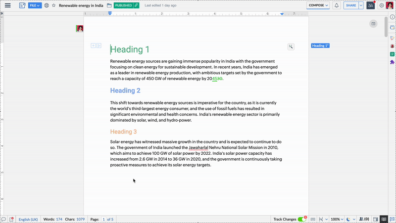 Zoho Writer は、Zoho Sign、Adobe Sign、DocuSign、SignEasy などの主要なe-署名ソリューションと連携しています。これにより、スキャンソフトウェアや署名パッド、デジタル証明書が不要となり、Writer から直接、法的に有効な電子署名を送信・収集できます。
