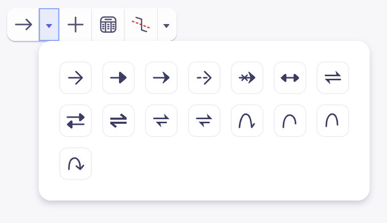 化学反応の流れや方向を指示するためにarrowsを使用します。