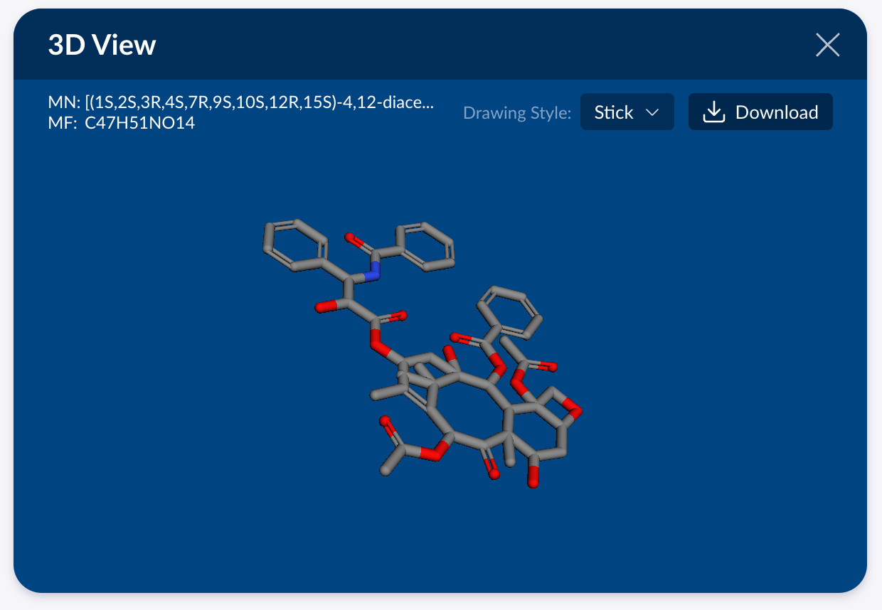 分子の3D構造を観察します。プリントアウトするか、画像としてダウンロードするオプションがあります。