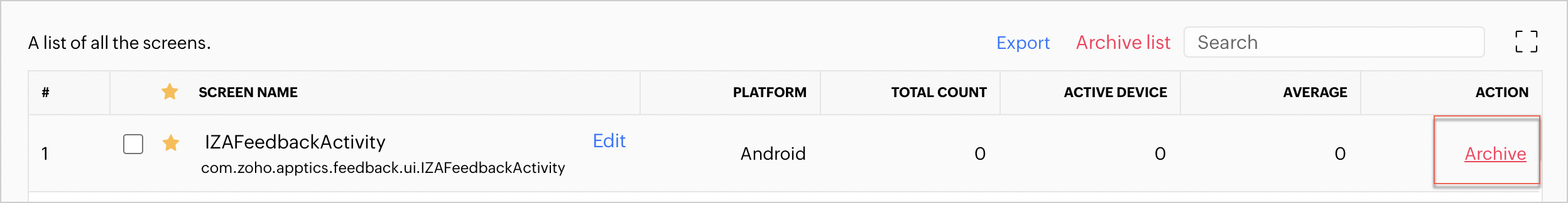 1. Appticsコンソールで画面をアーカイブできます。画面がアーカイブ済みになると、それ以降トラッキングは行われません。