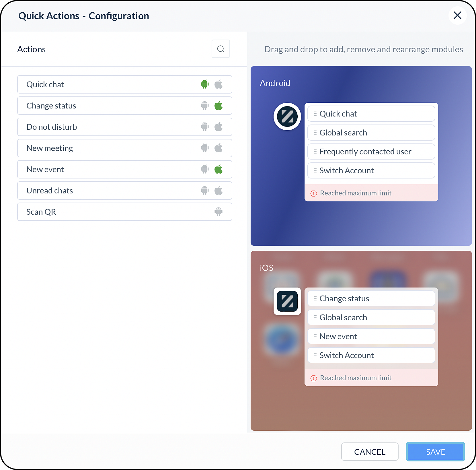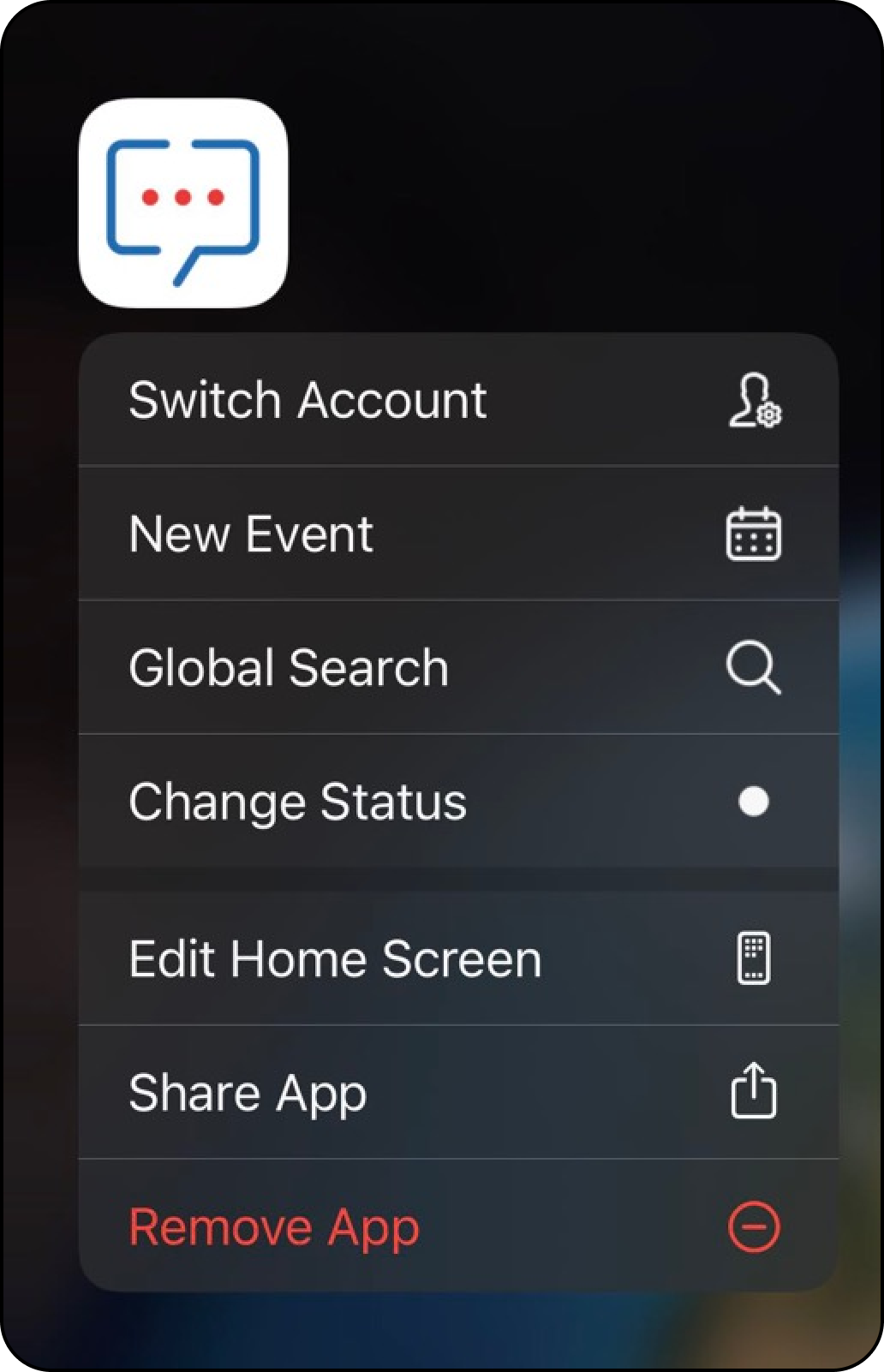 4. クリックして保存を押して変更を反映させます。モバイルでCliqアプリのアイコンを長押しすると、このようなクイックアクションが表示されます。