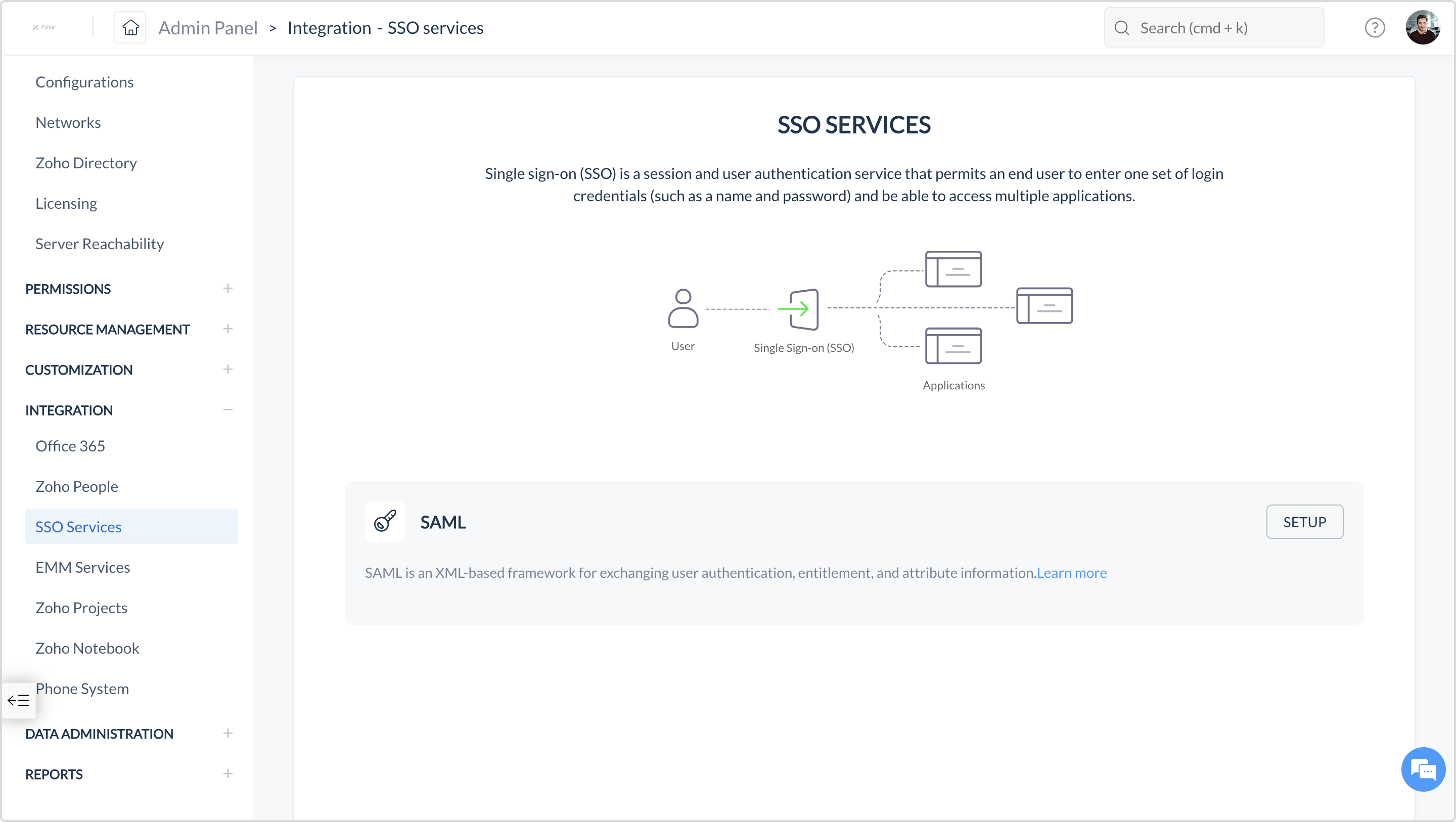 組織でSAMLを有効にするには: