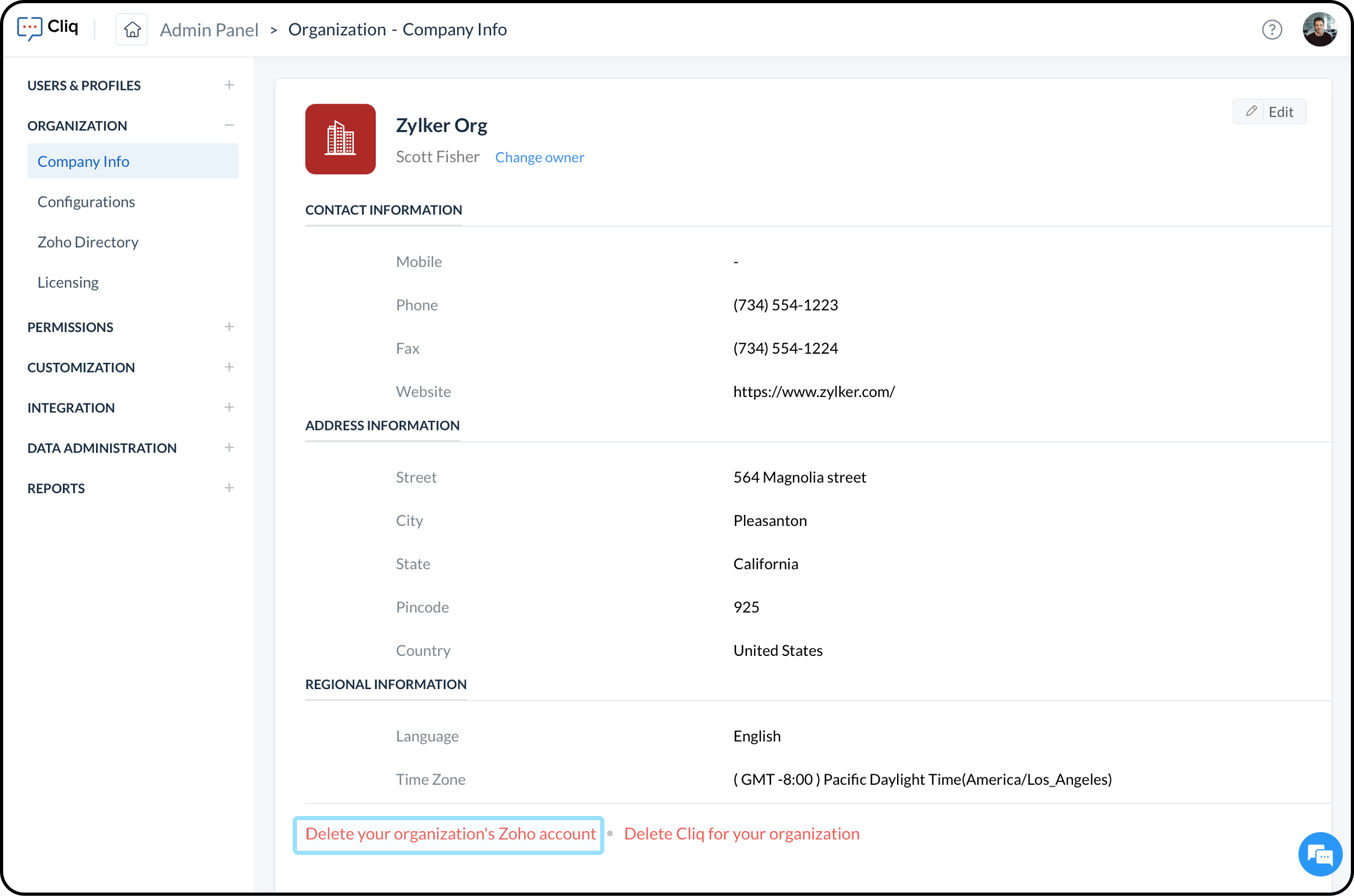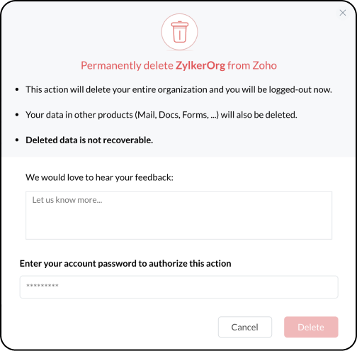 あなたの組織のZohoアカウントを終了するには、以下の手順をお試しください:
