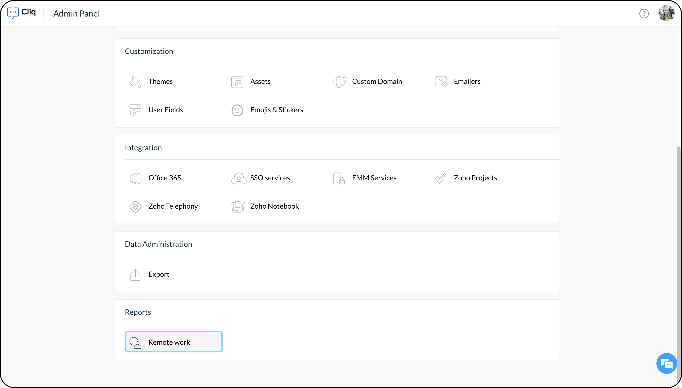 1. スクロールして、レポートの下にある リモートワーク を選択してください。
