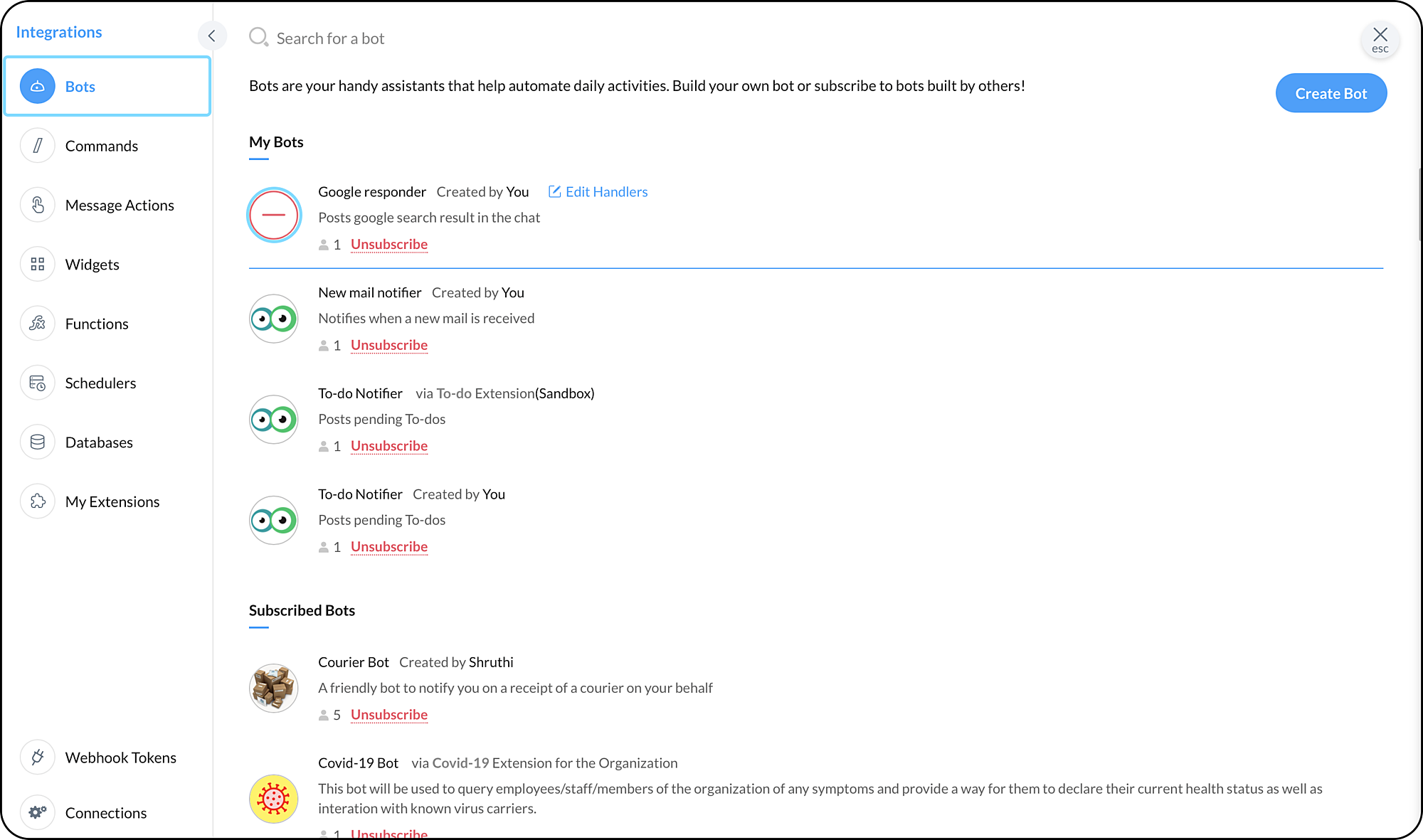 • 「 統合」の下に移動し、 ボットに移動してください。