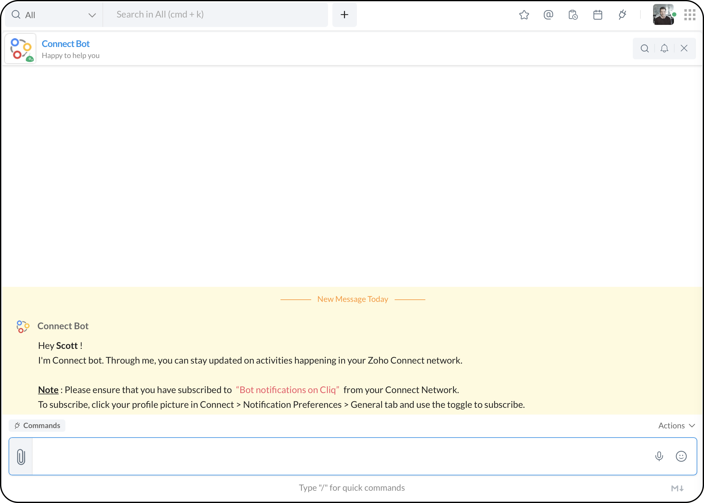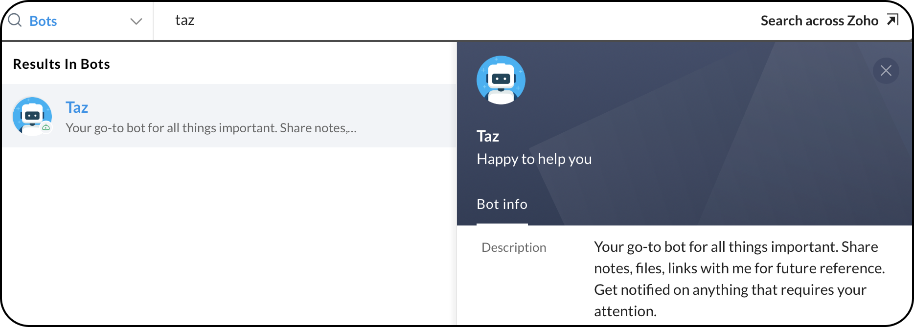 • ボットを購読するには、グローバル検索にボットの名前を入力します。