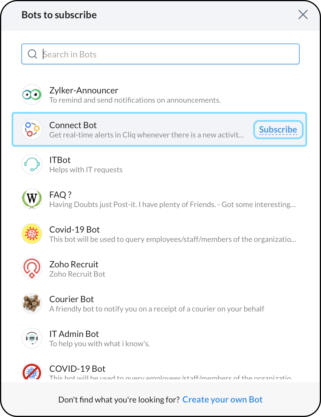 • 購読したいボットを選択または検索し、「購読」をクリックします。