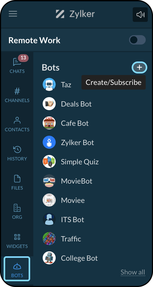 • プラスアイコン(+)を見つけて、botを作成/購読してください。