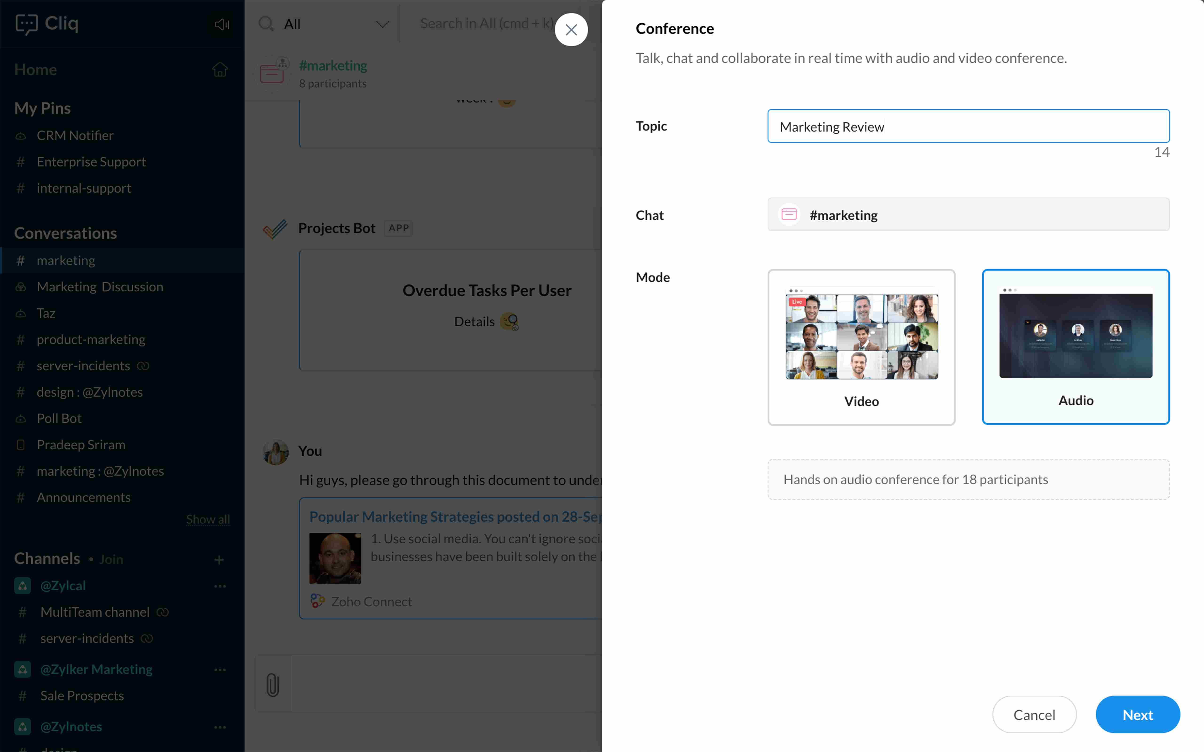 成長しているビジネスをリードする際、コミュニケーションとより良い決定は常に最優先であります。Cliqのオーディオ会議機能を使用すると、60人とすぐに協力できます。