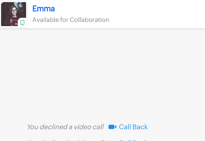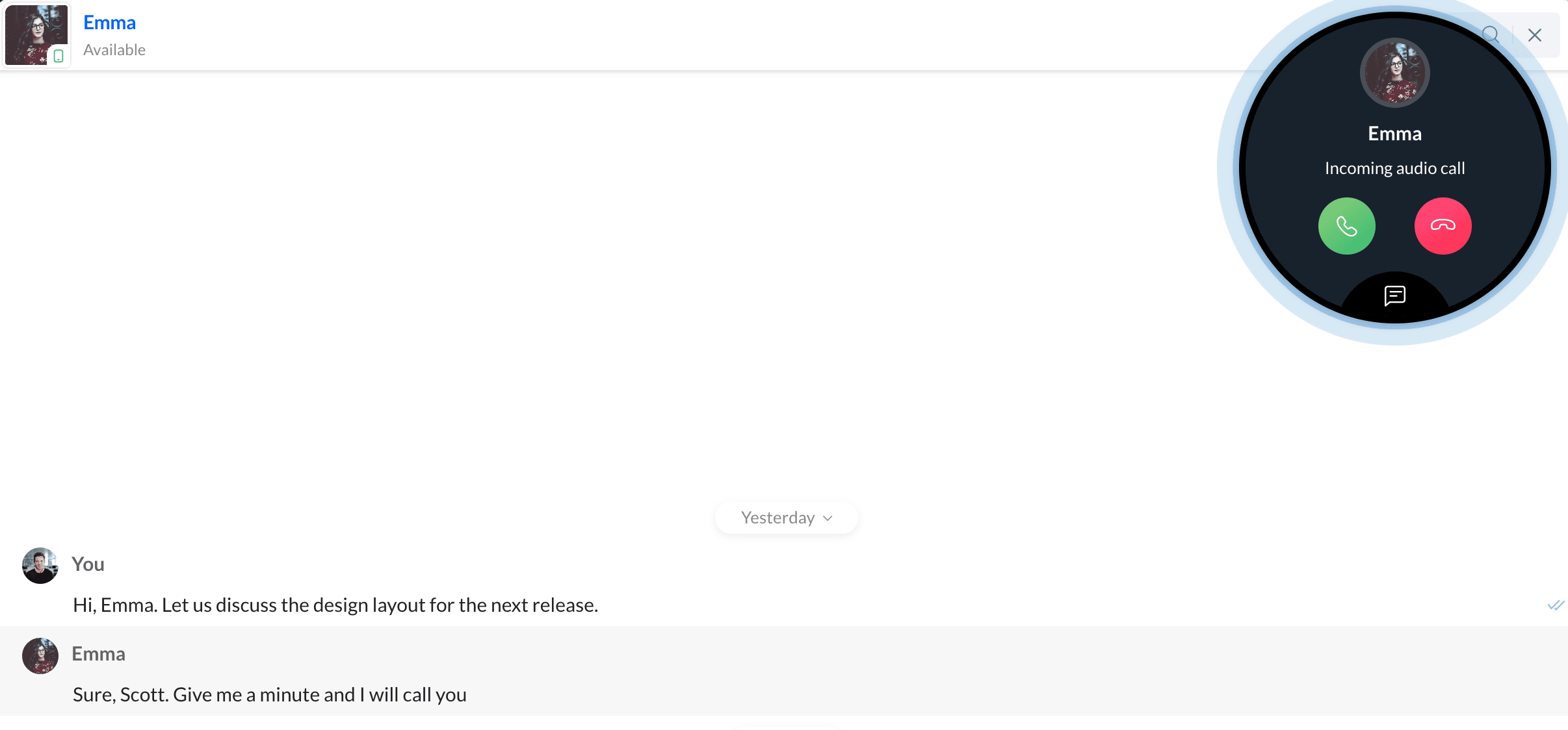 - 拒否: 通話を拒否すると、チャットに通話を拒否したことを示す通知が表示されます。