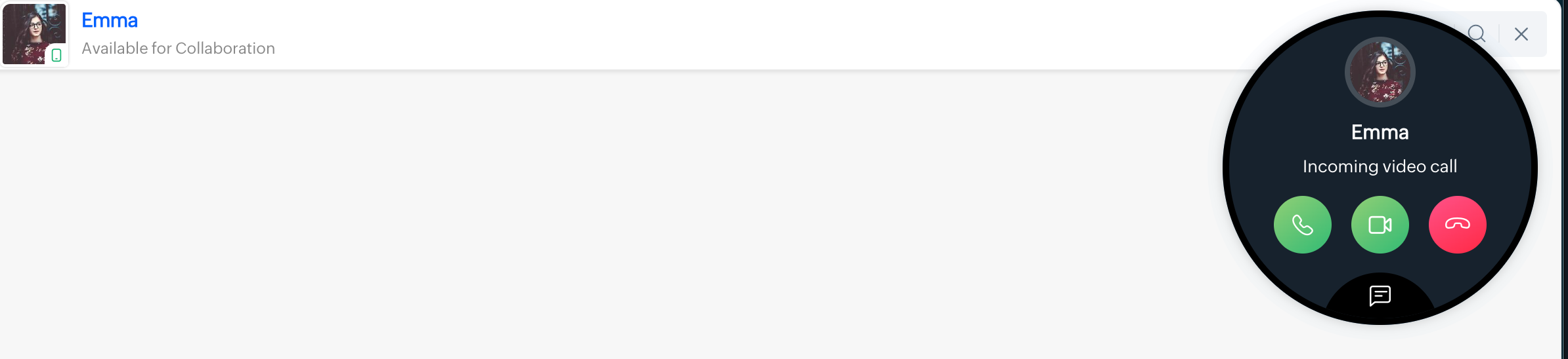 メモ: 通話の着信は、Webブラウザー内のすべてのタブと、Cliq モバイルアプリで受信できます。