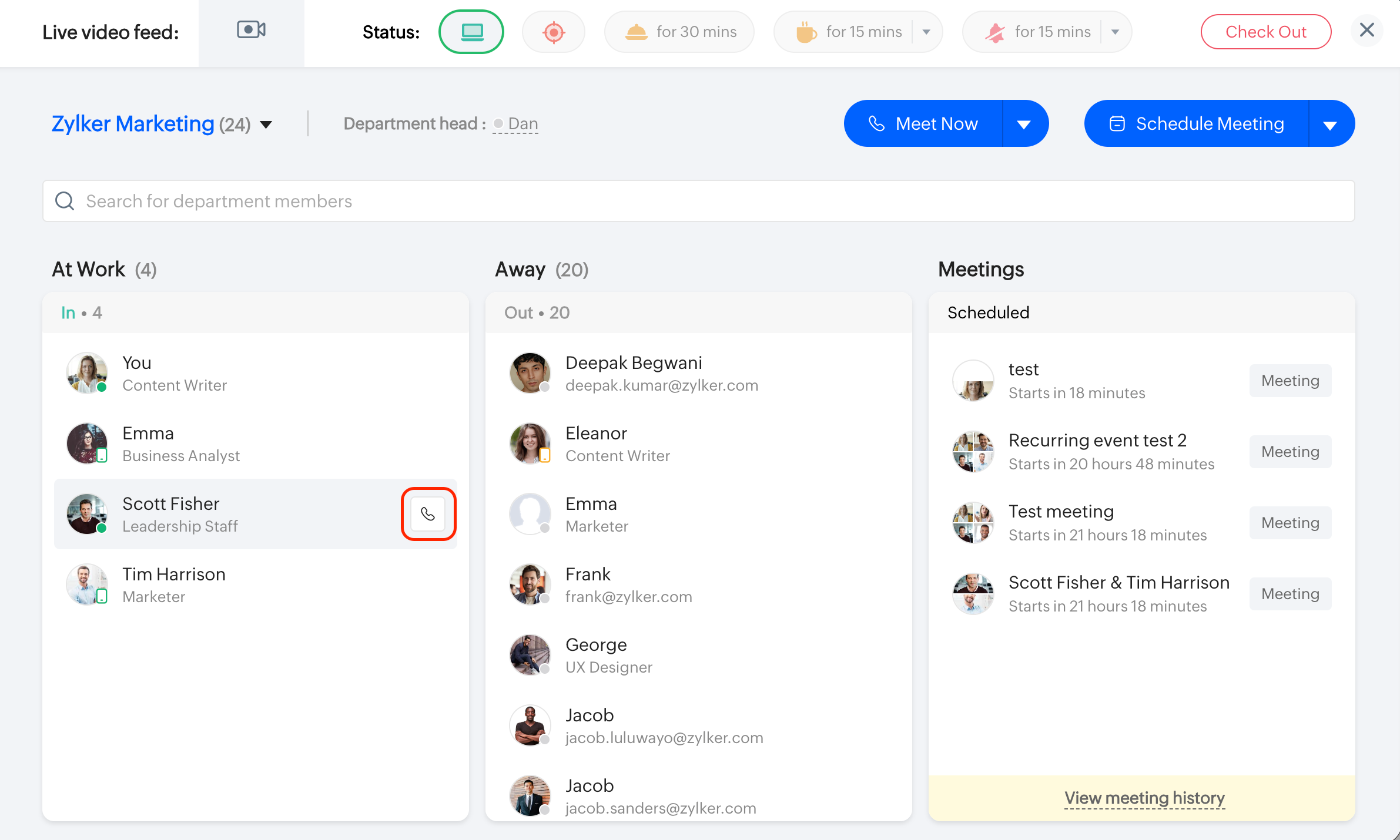 リモートワークビューで、通話したいユーザーにカーソルを合わせます。