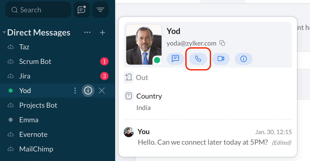 をクリックします。次に、通話アイコンをクリックして、そのユーザーに通話します。