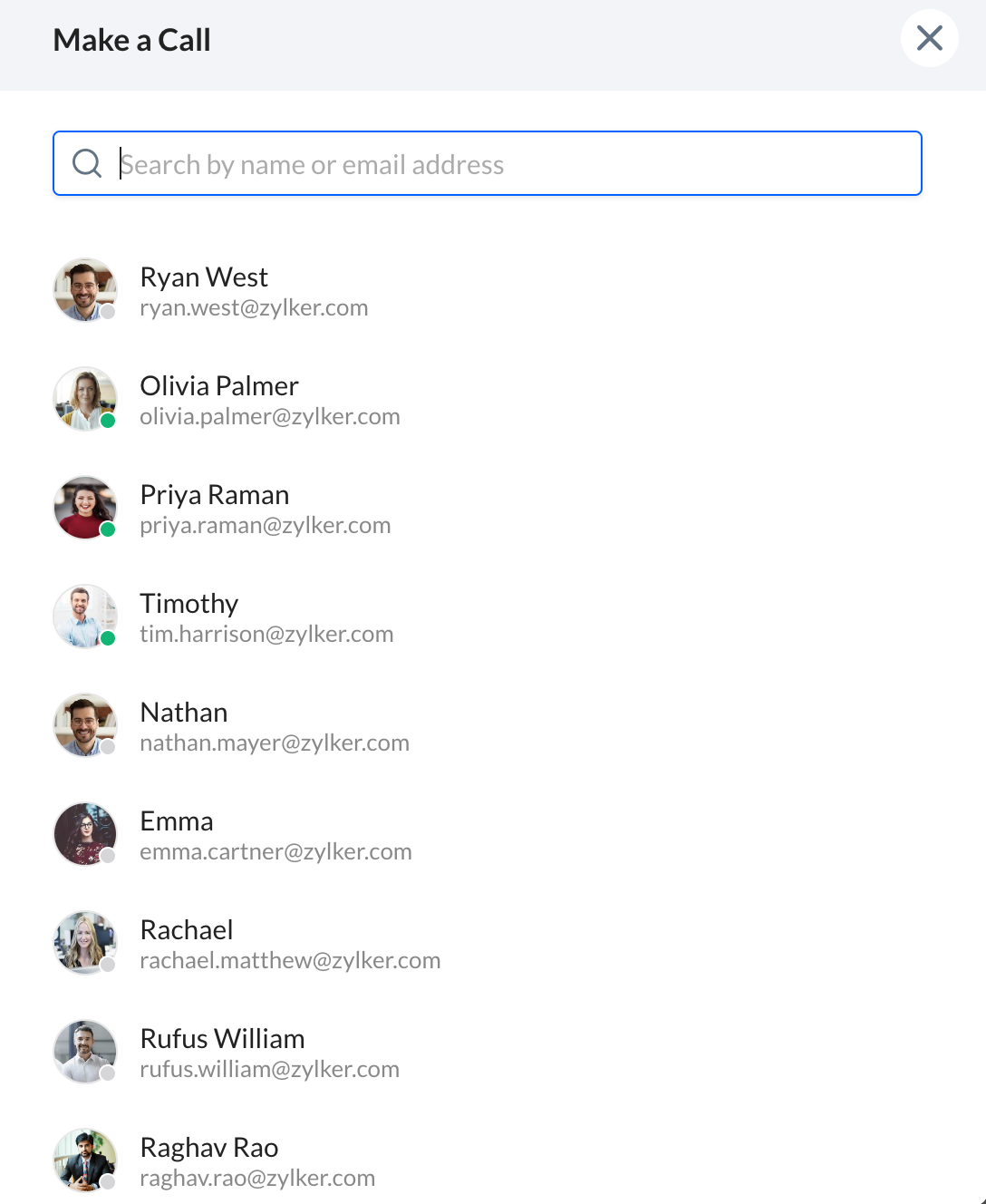 をクリックした場合は、通話したいユーザーを選択できる検索バー付きのドロップダウンが表示されます。