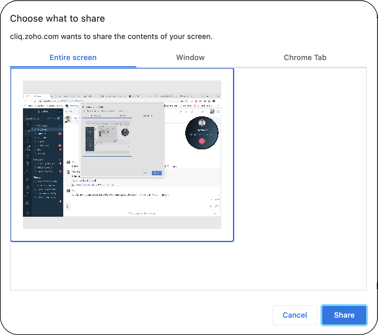 1. ポップアップボックスが表示され、共有するスクリーンを選択するように求められます。