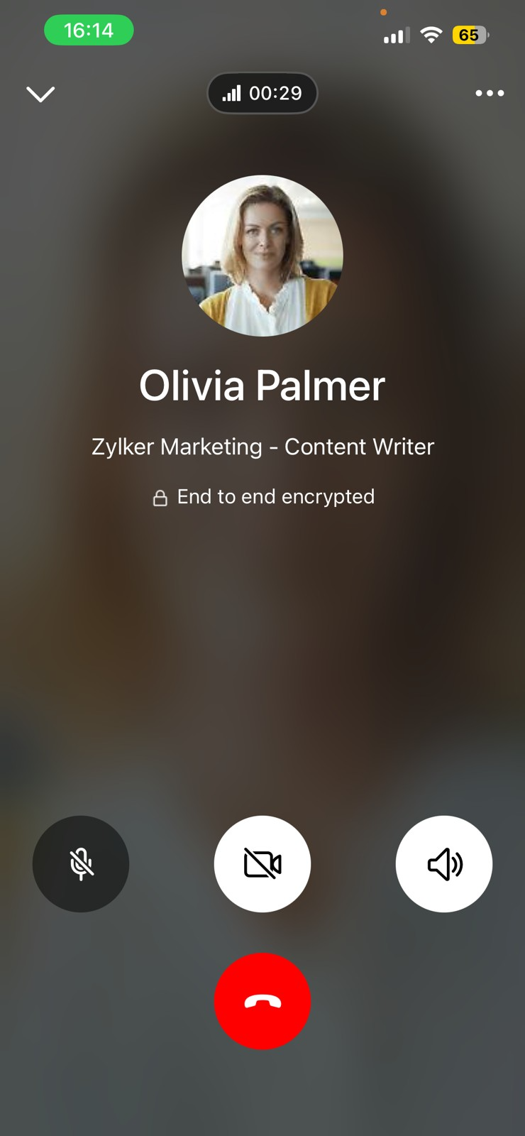 メモ: モバイルアプリで Cliq 通話中に通常の携帯電話の着信を受けた場合、2 つの通話を切り替えることができます。