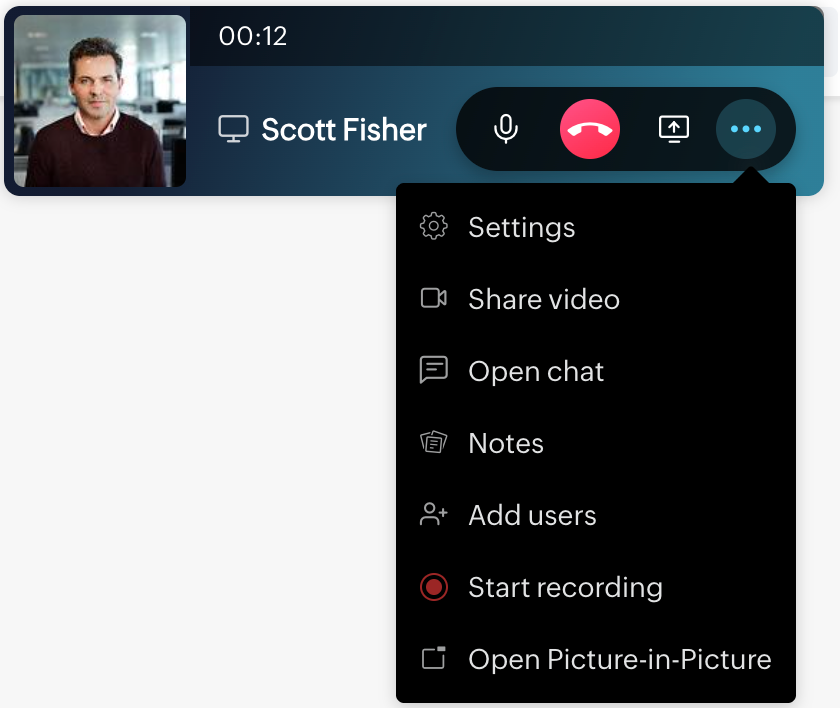 録画を開始: このオプションをクリックして通話を録画し、今後の参照用に保存できます。