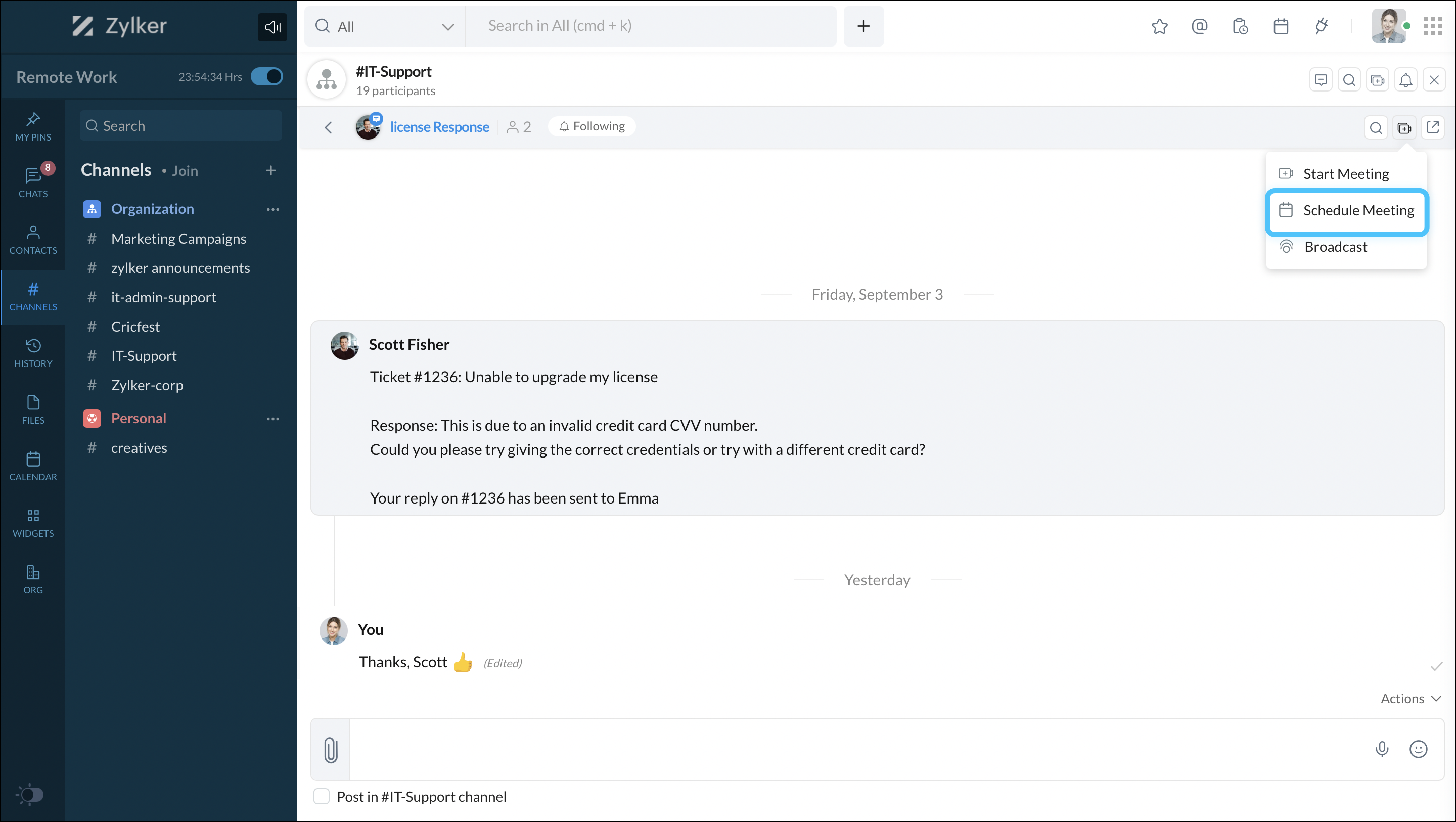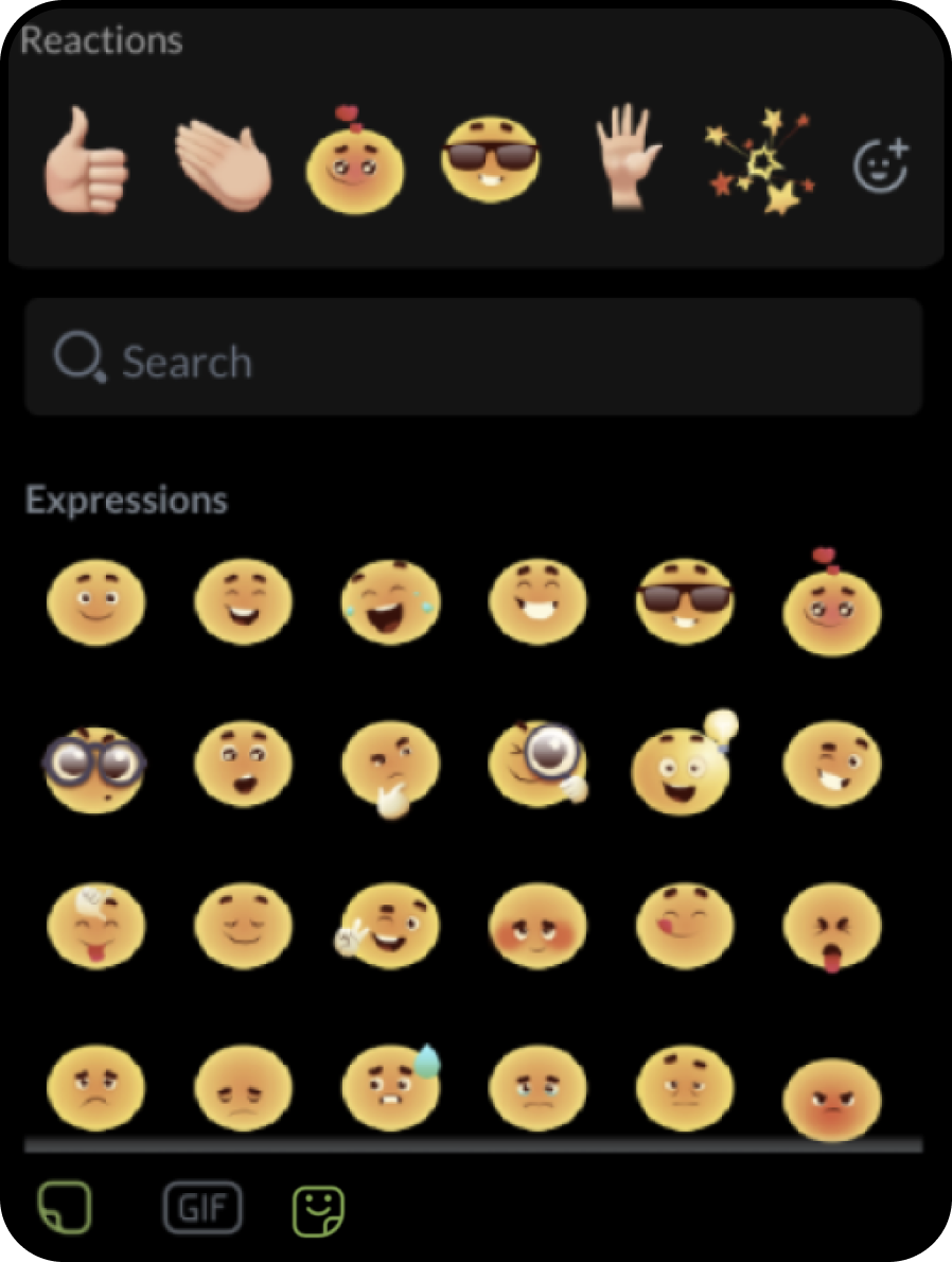 - 「リアクションを追加」アイコンをクリックして、リアクション/絵文字/GIF/カスタムステッカーで返信します。
