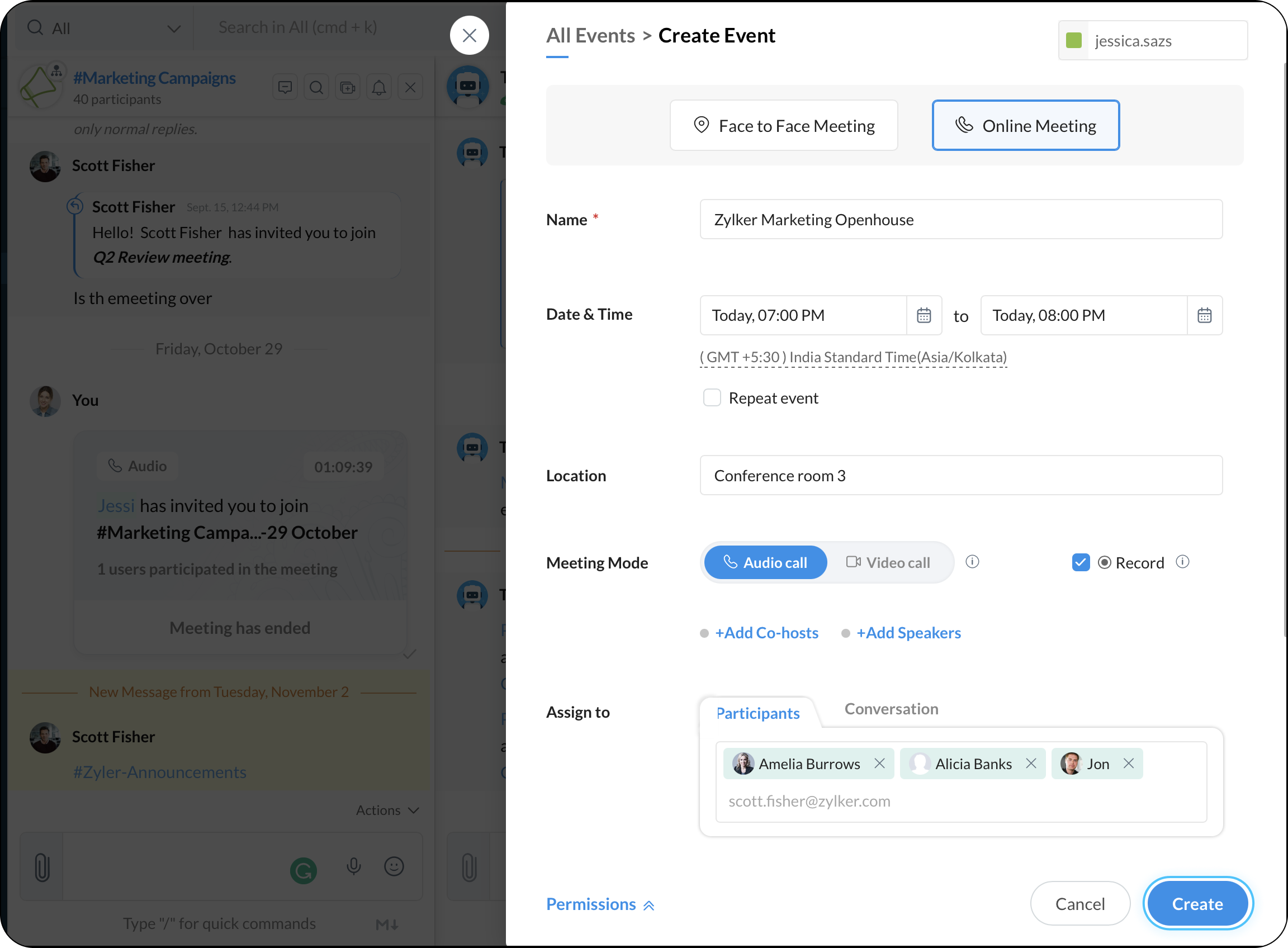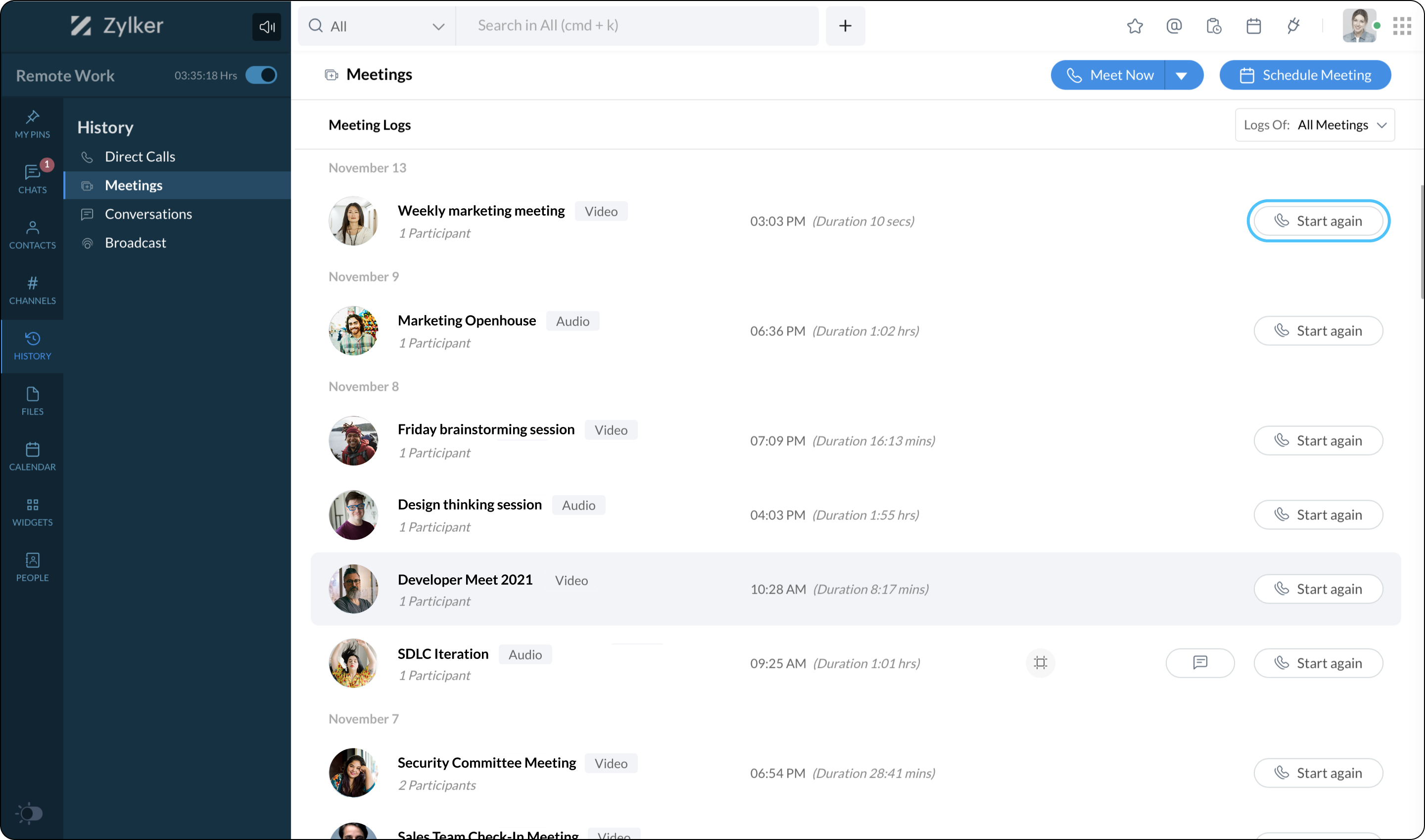 - 録音を開始: 会議中に録音を開始をクリックすることで、通話を録音できます。