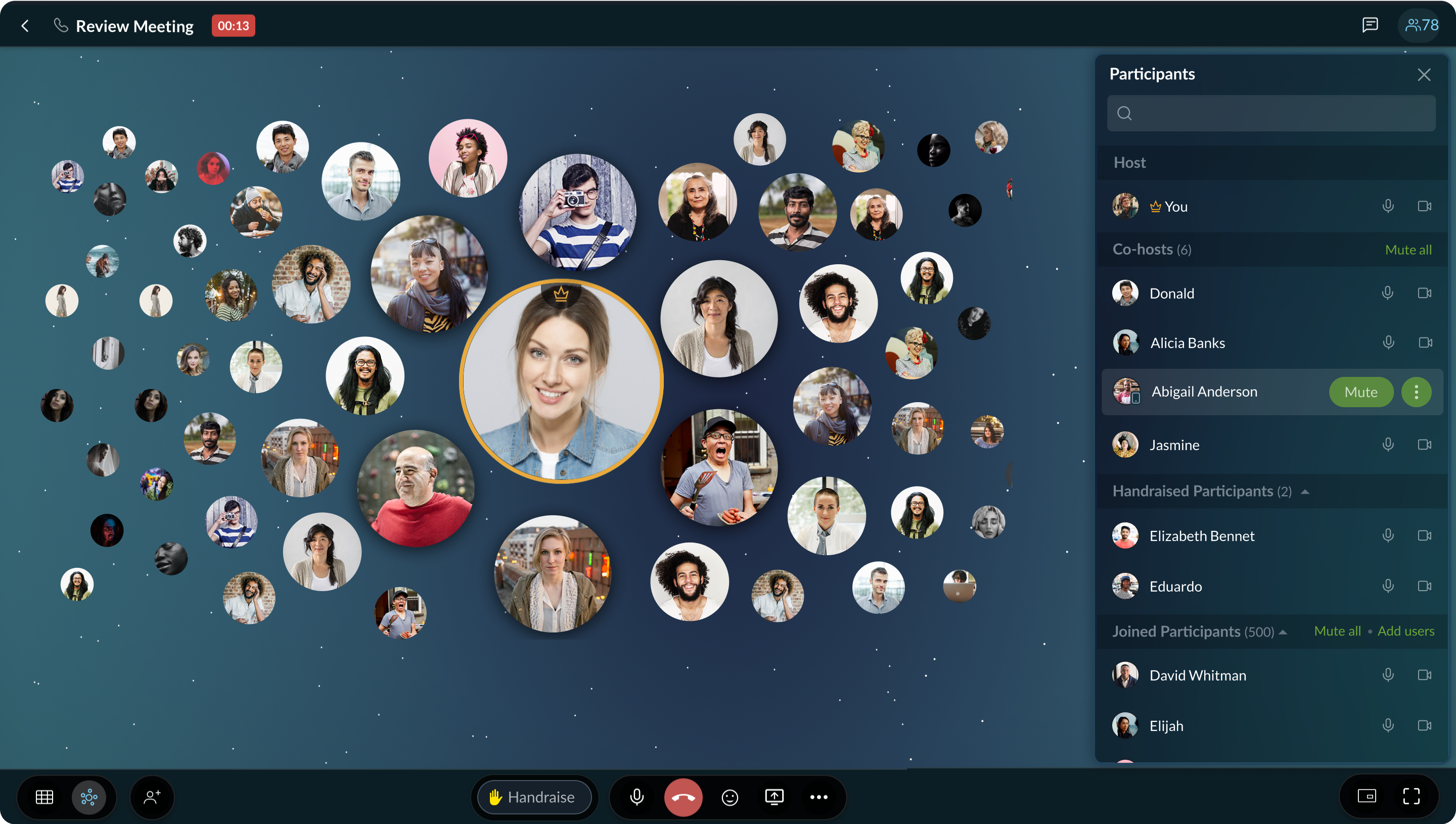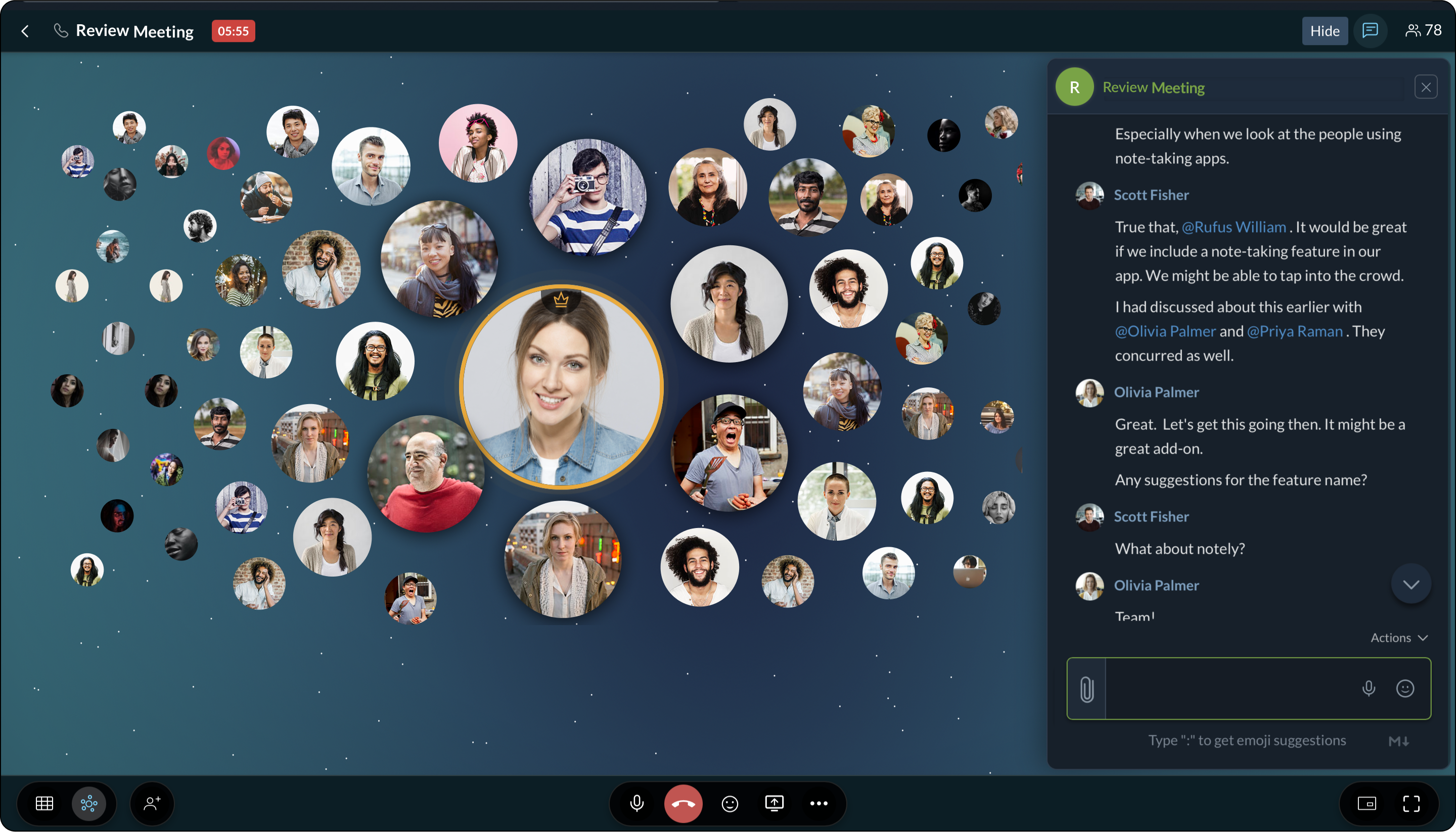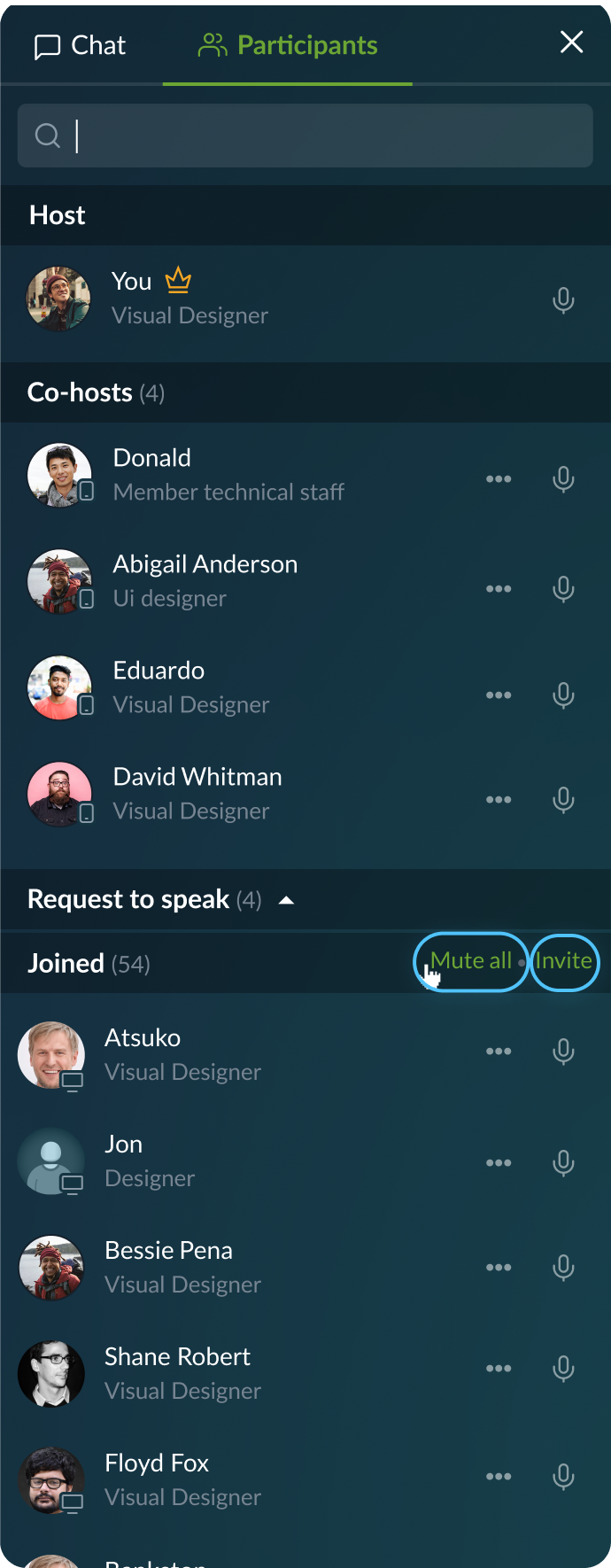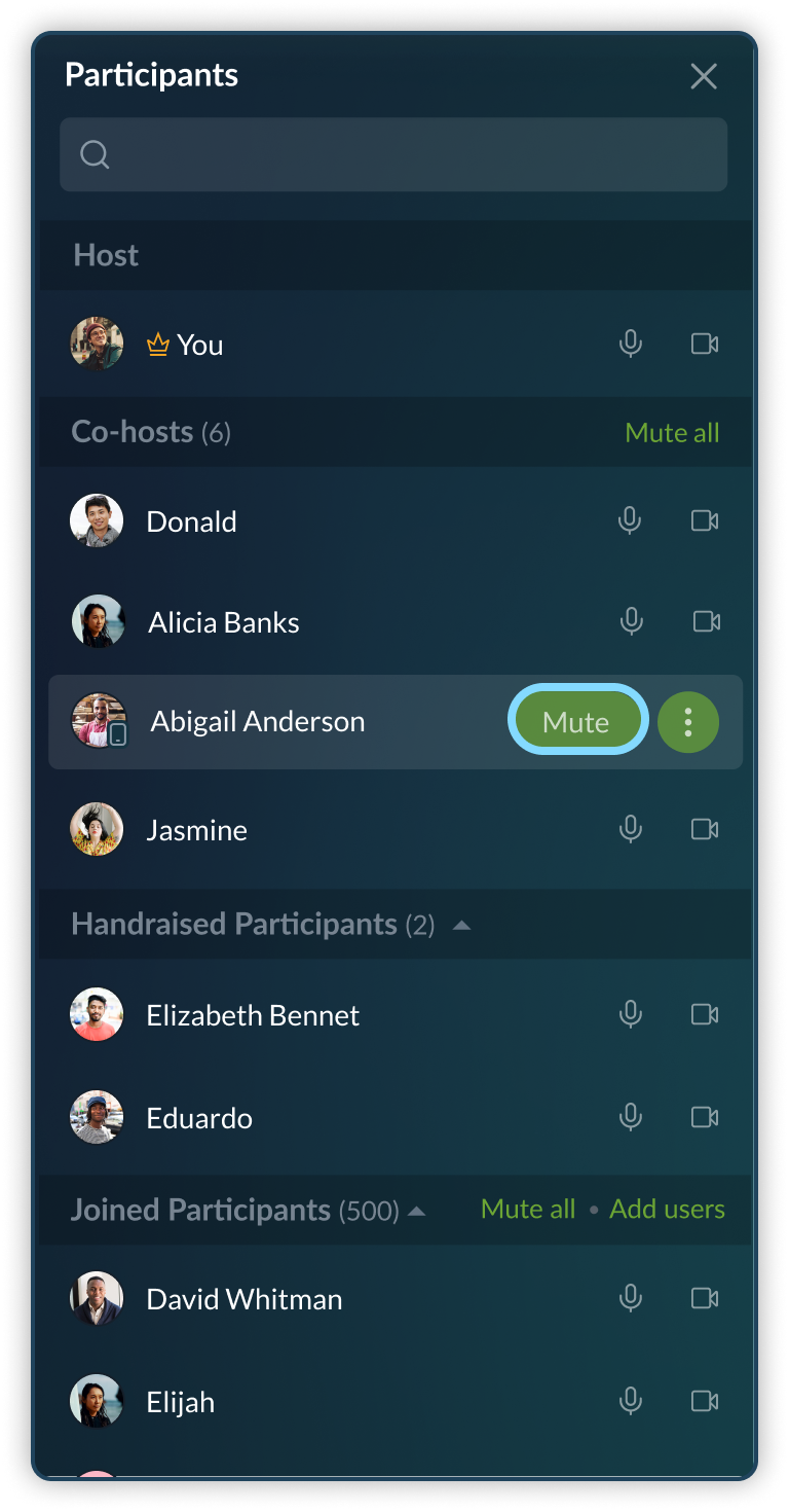 - フォーカスモードを使用すると、選択した特定の参加者にフォーカスし、他のメンバーはフォーカスモードが有効になったときにミュートされます。