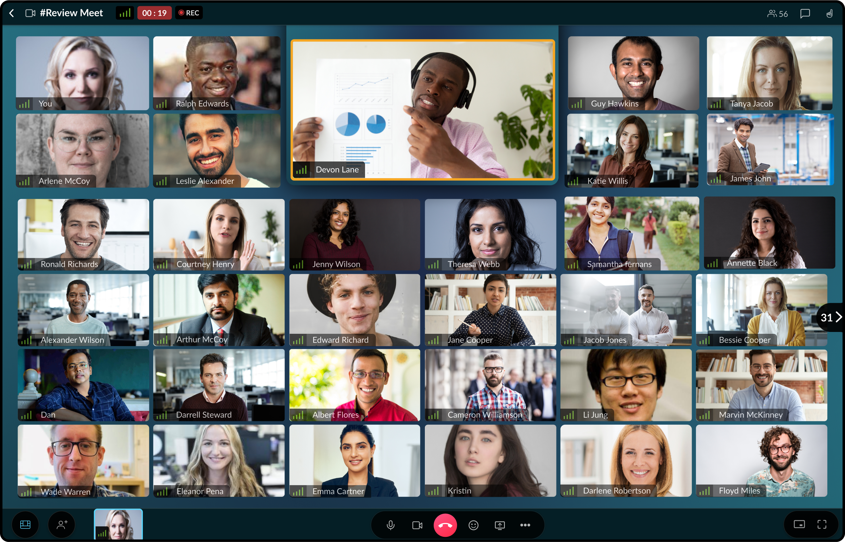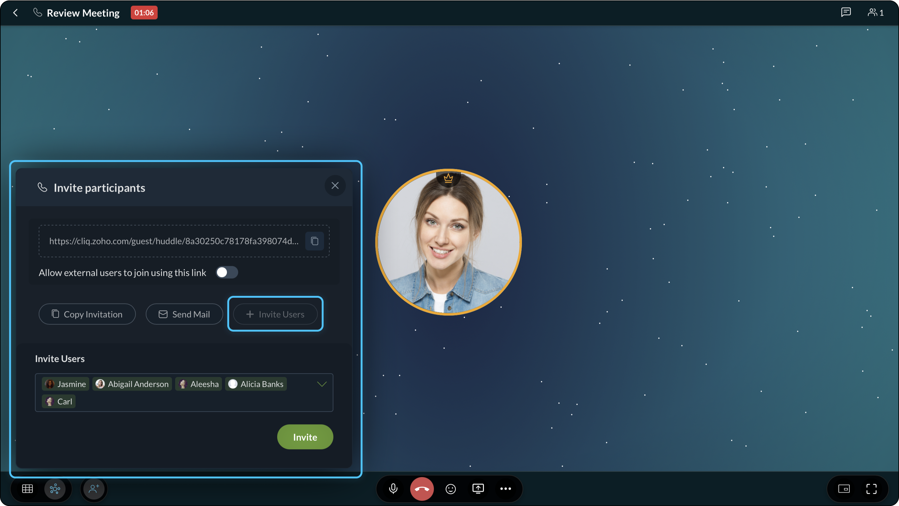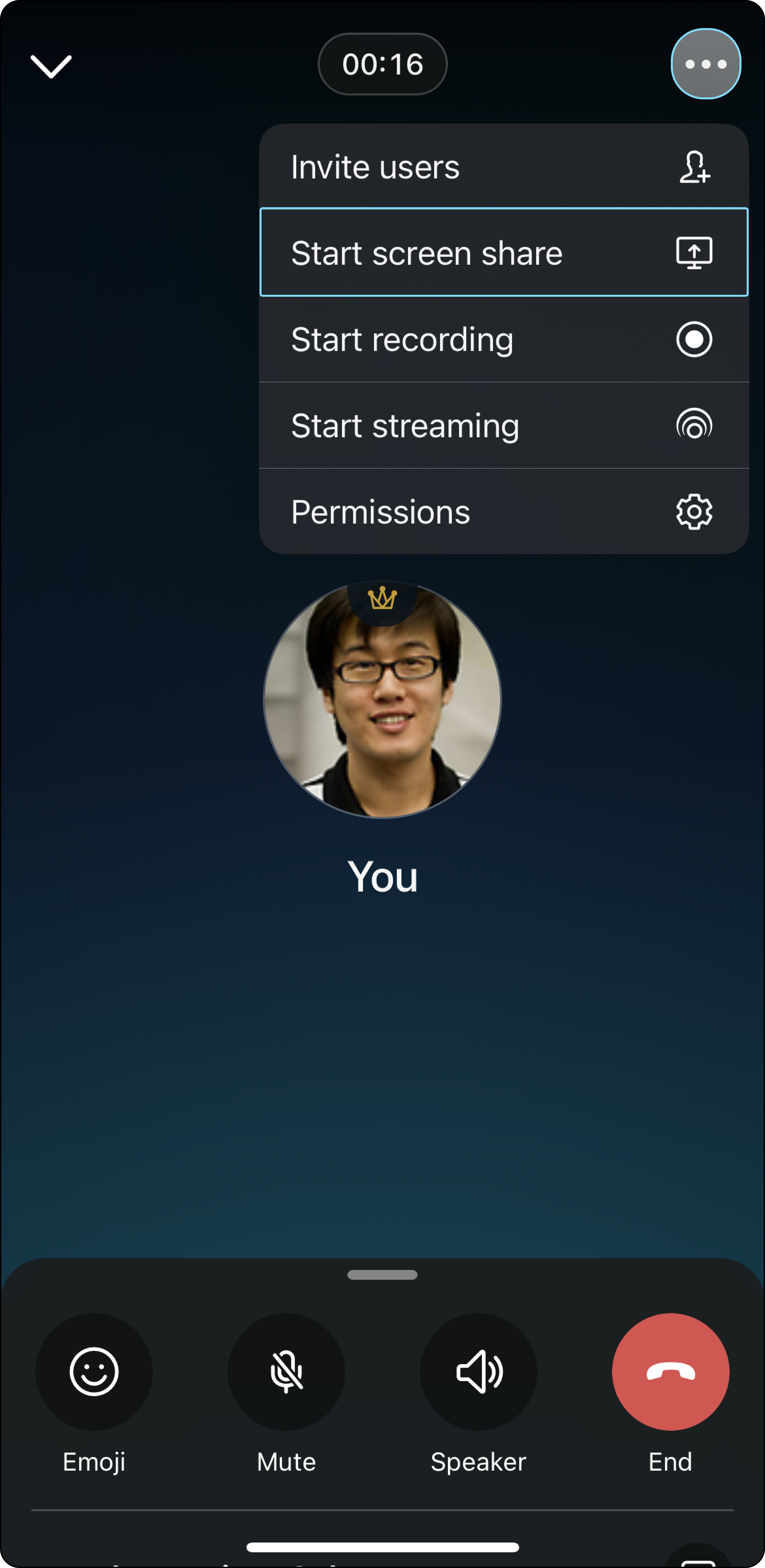 - 設定: 設定から、ホストは会議中に権限/一般設定/個人設定およびデバイス設定を編集できます。