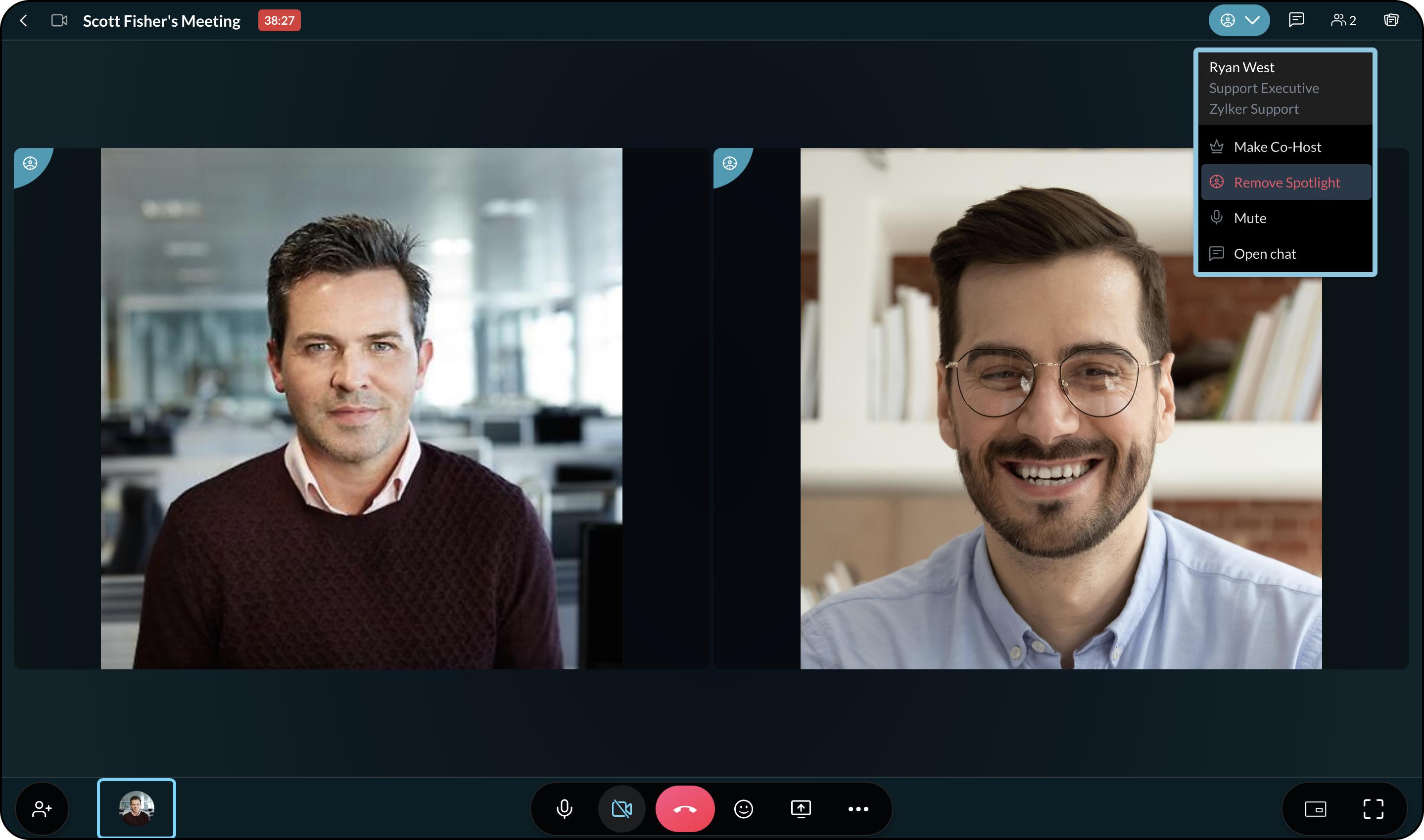 - フォーカスモードオプションをクリックすると、フォーカスモードドロップダウンからフォーカスしたい参加者を選択できます。