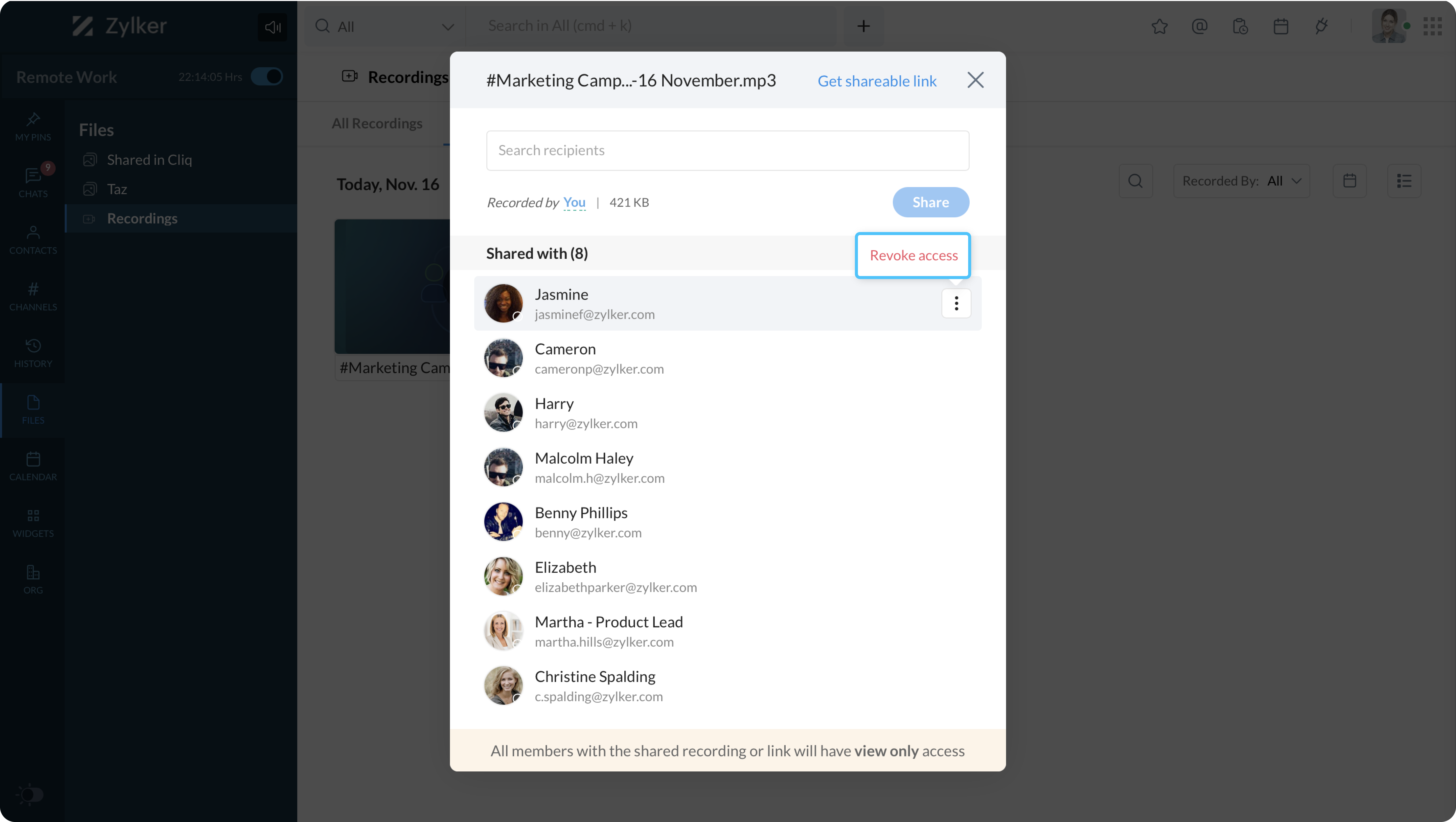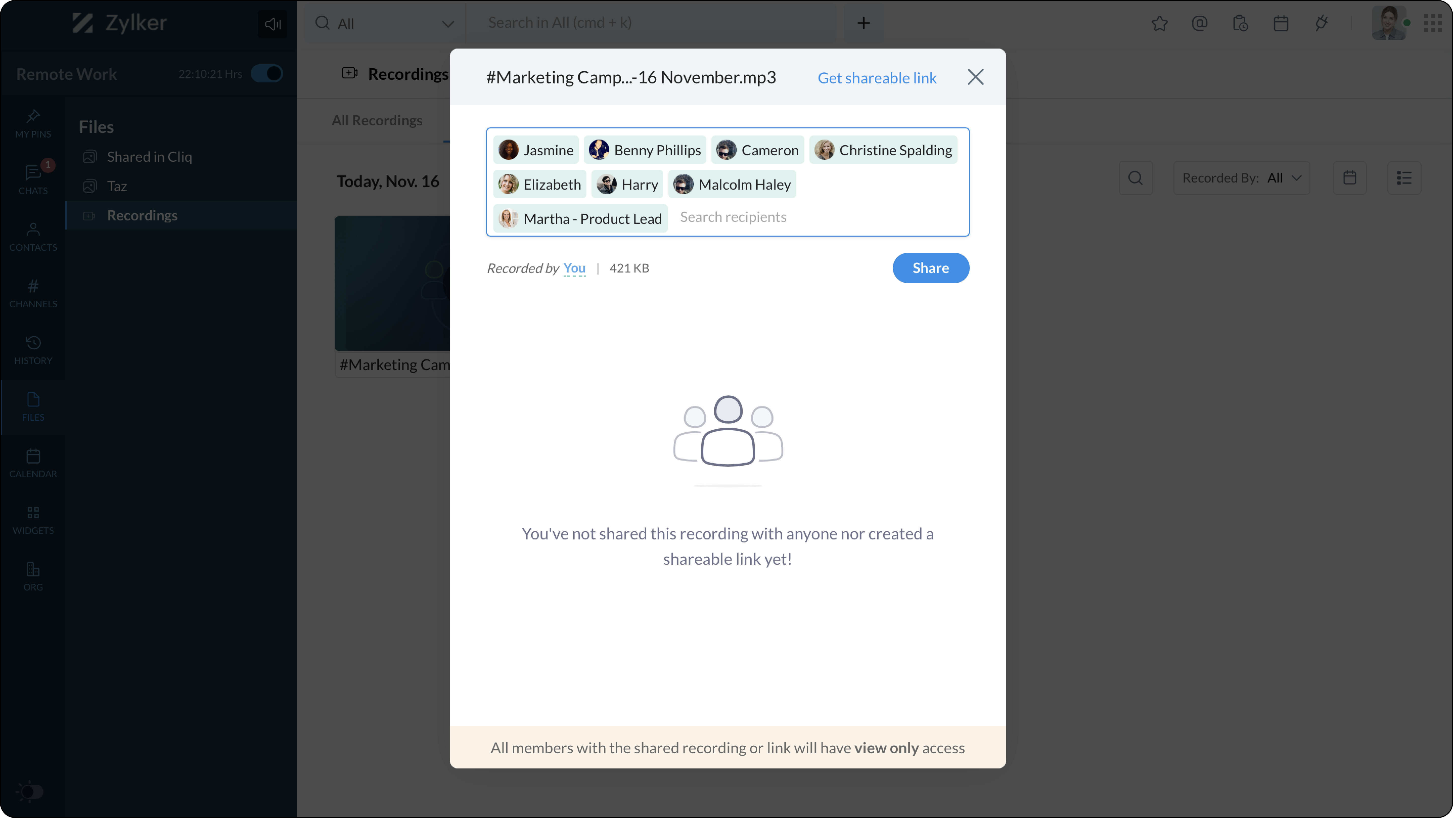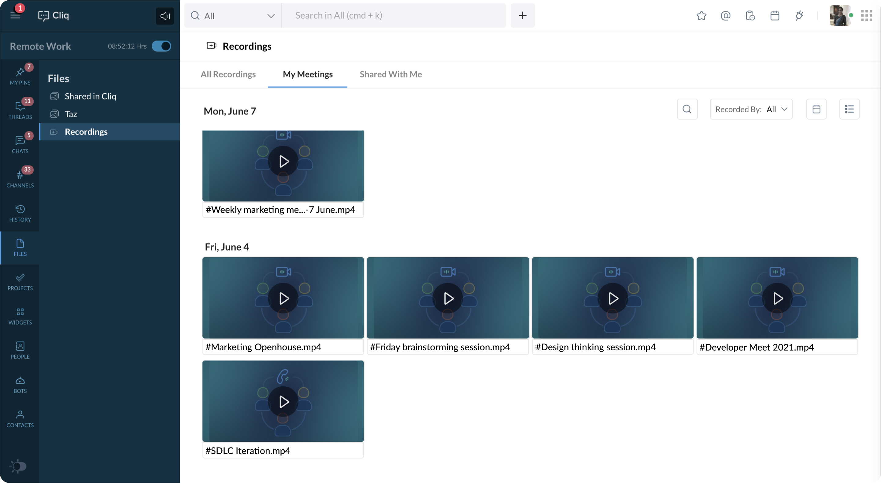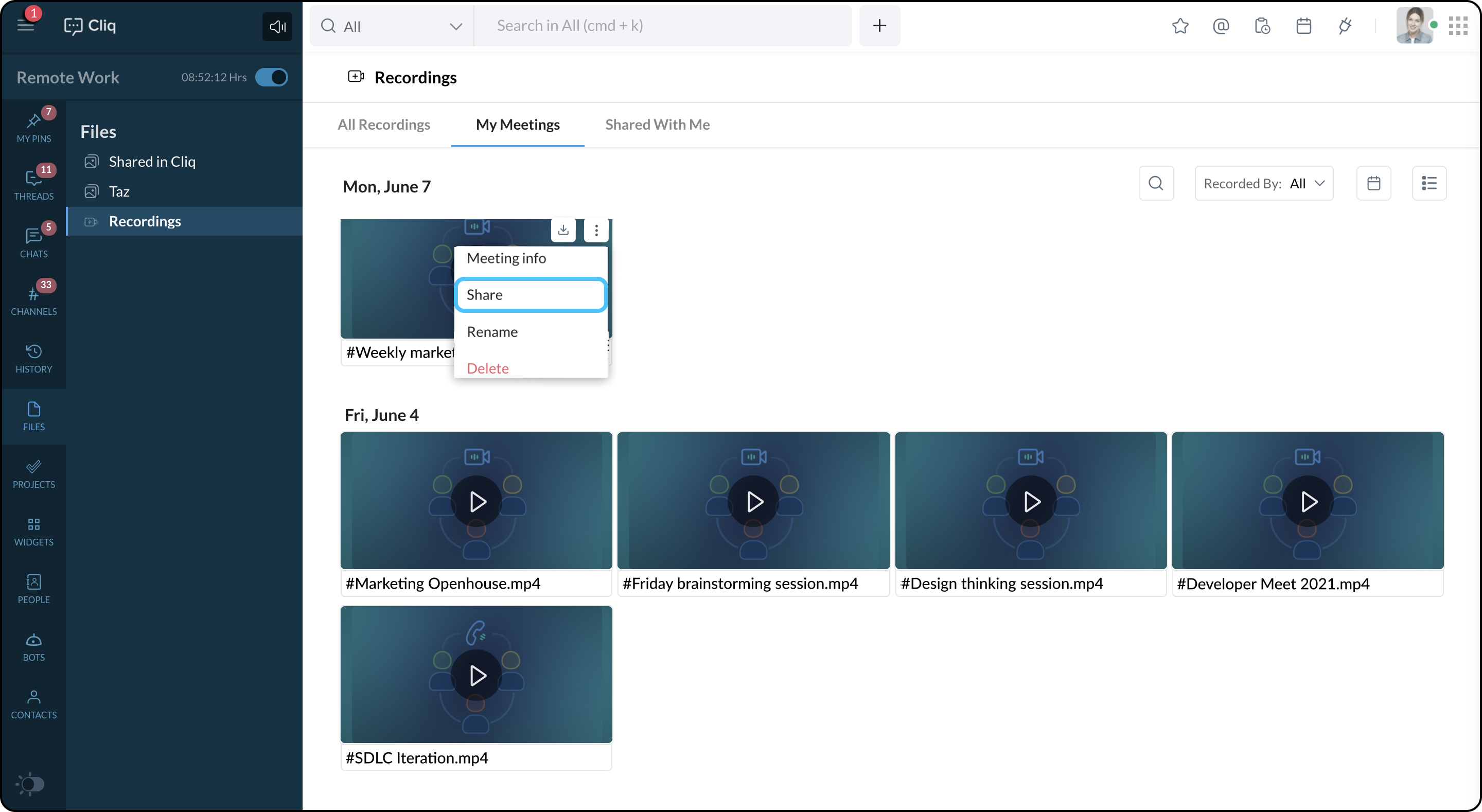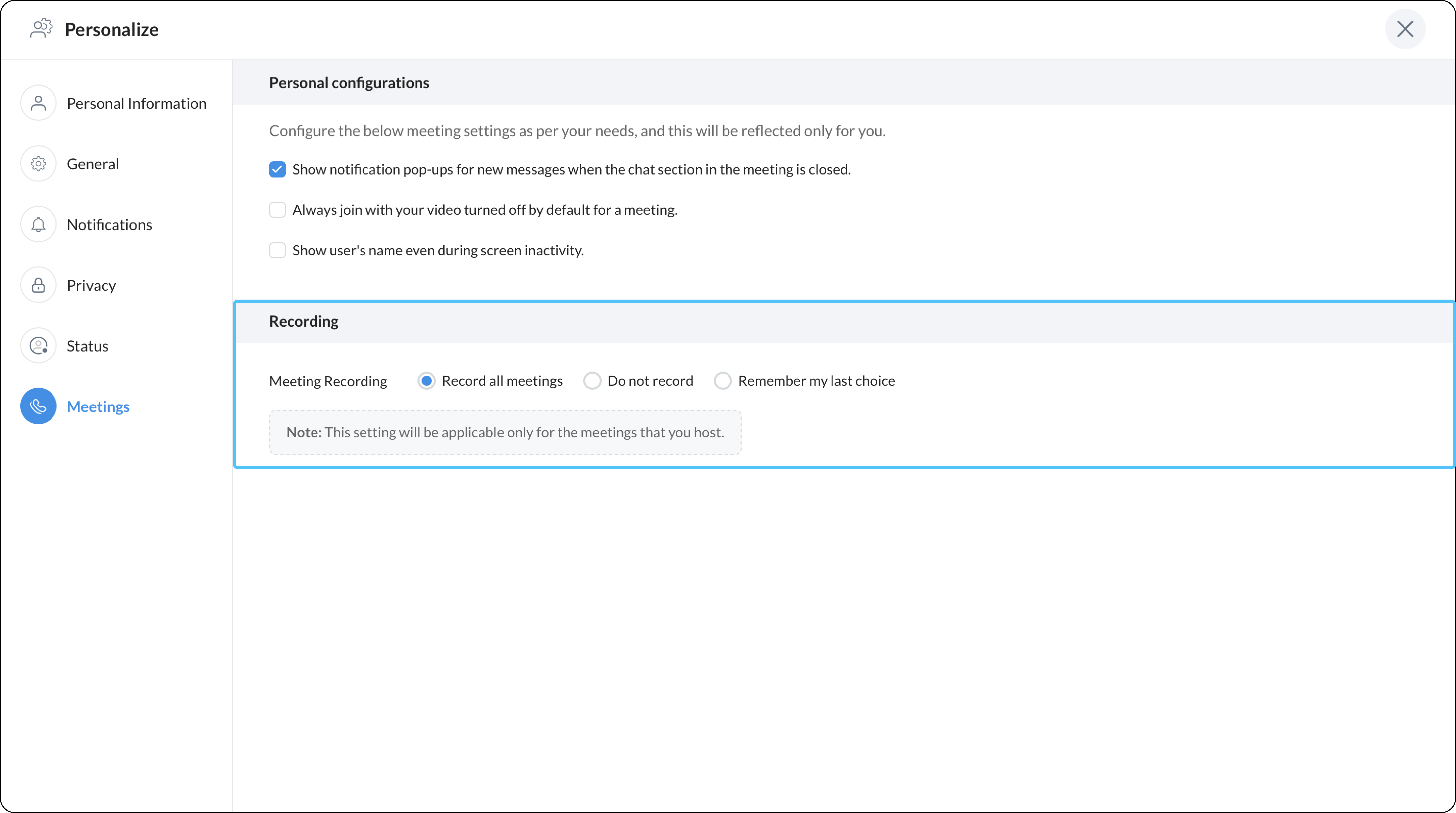 録音が有効になっていた会議の録音 あなたと共有された録音 ホストが会議の録音を有効にしたものの録音