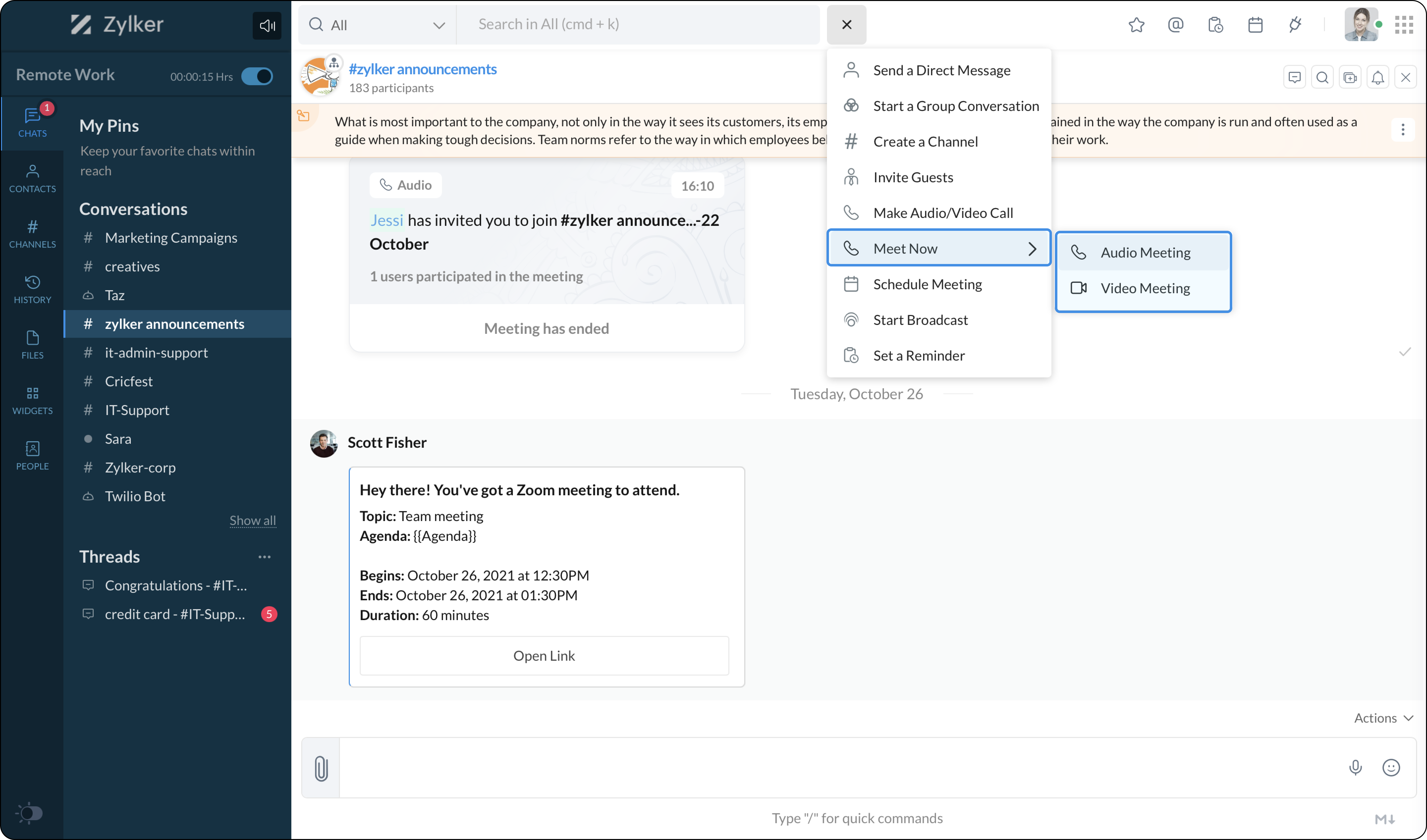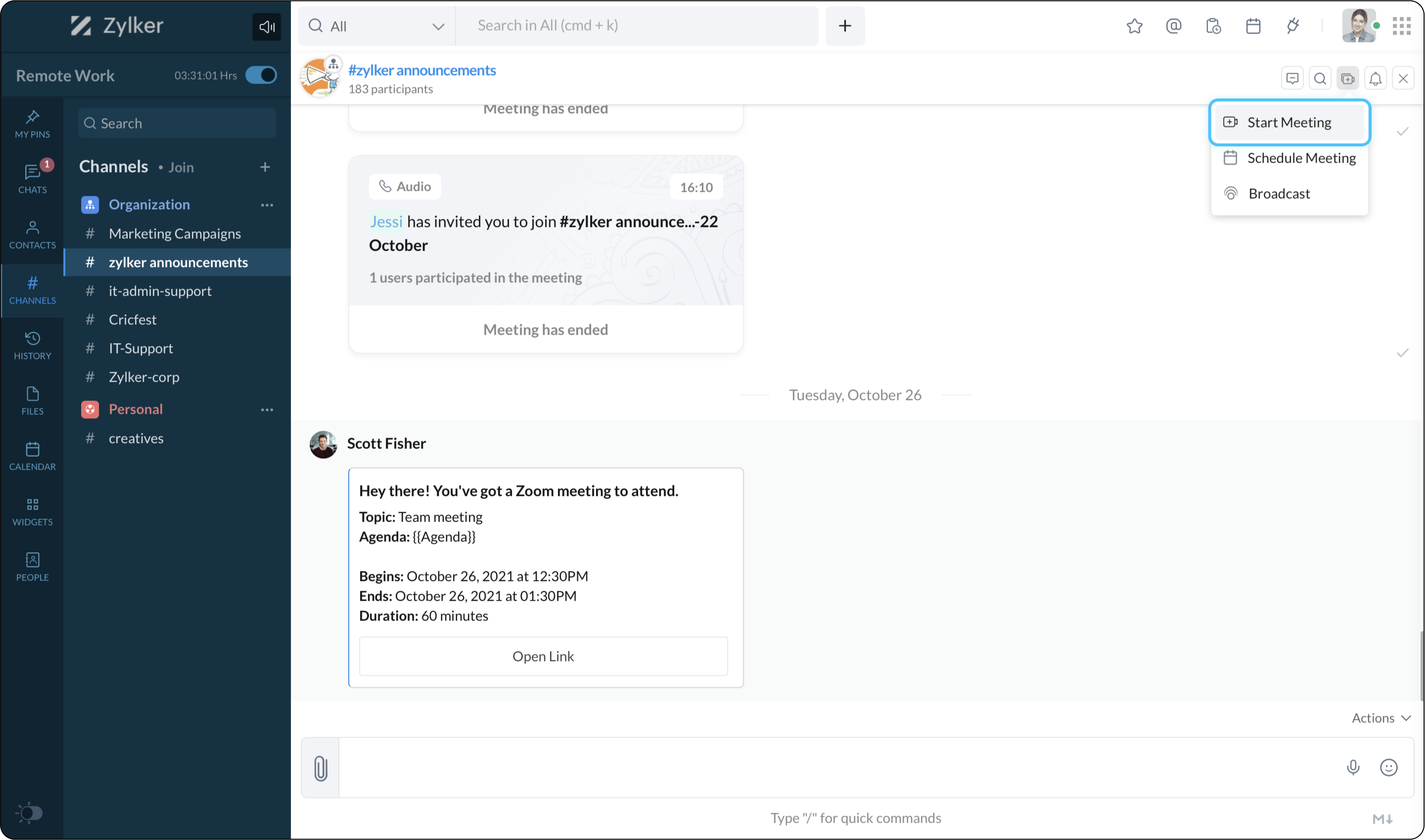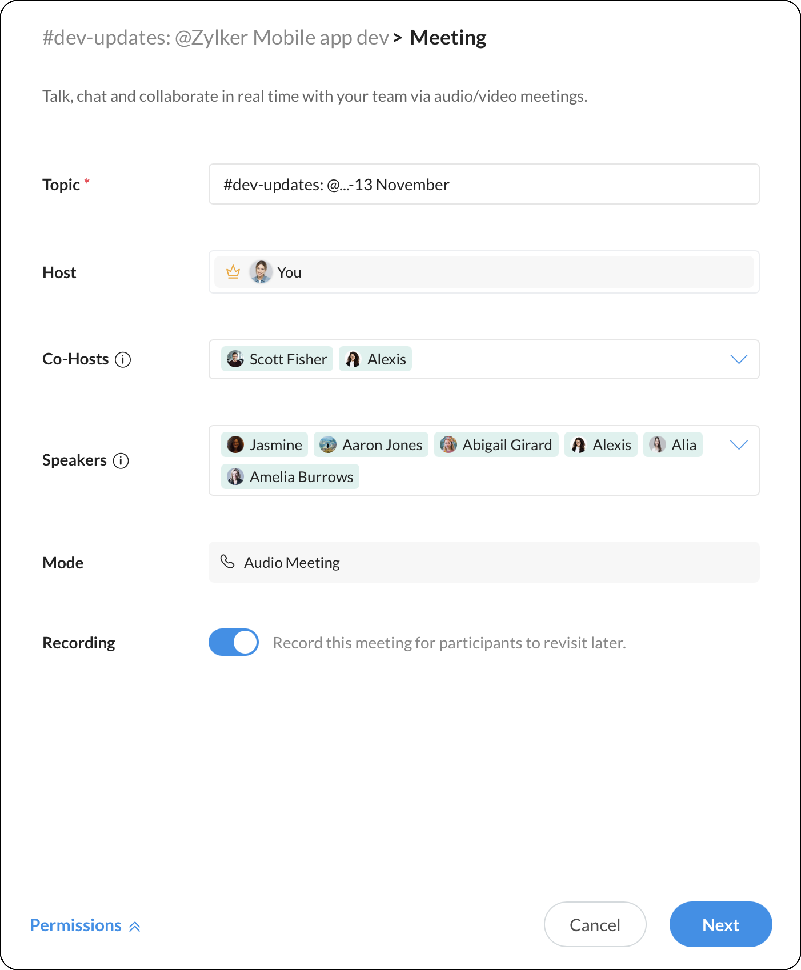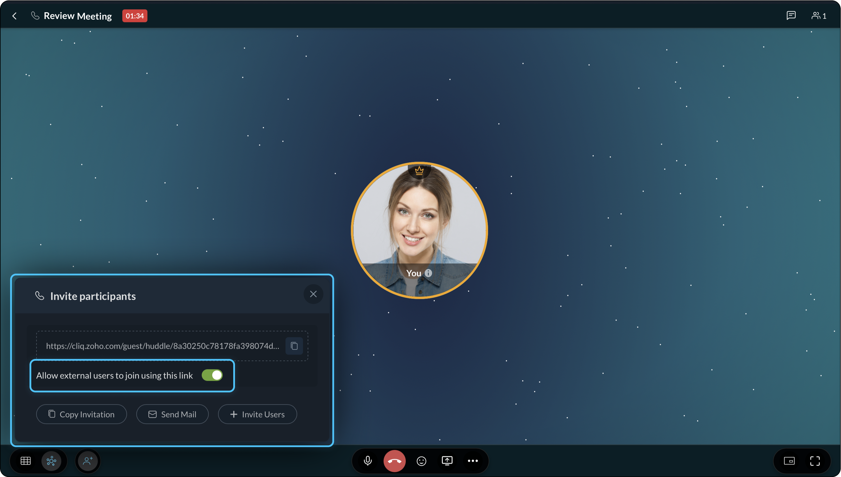 Cliq会議で実行できるさまざまなアクションについて詳しく知りたい場合は、次を参照してください:Cliq会議で実行できるアクション