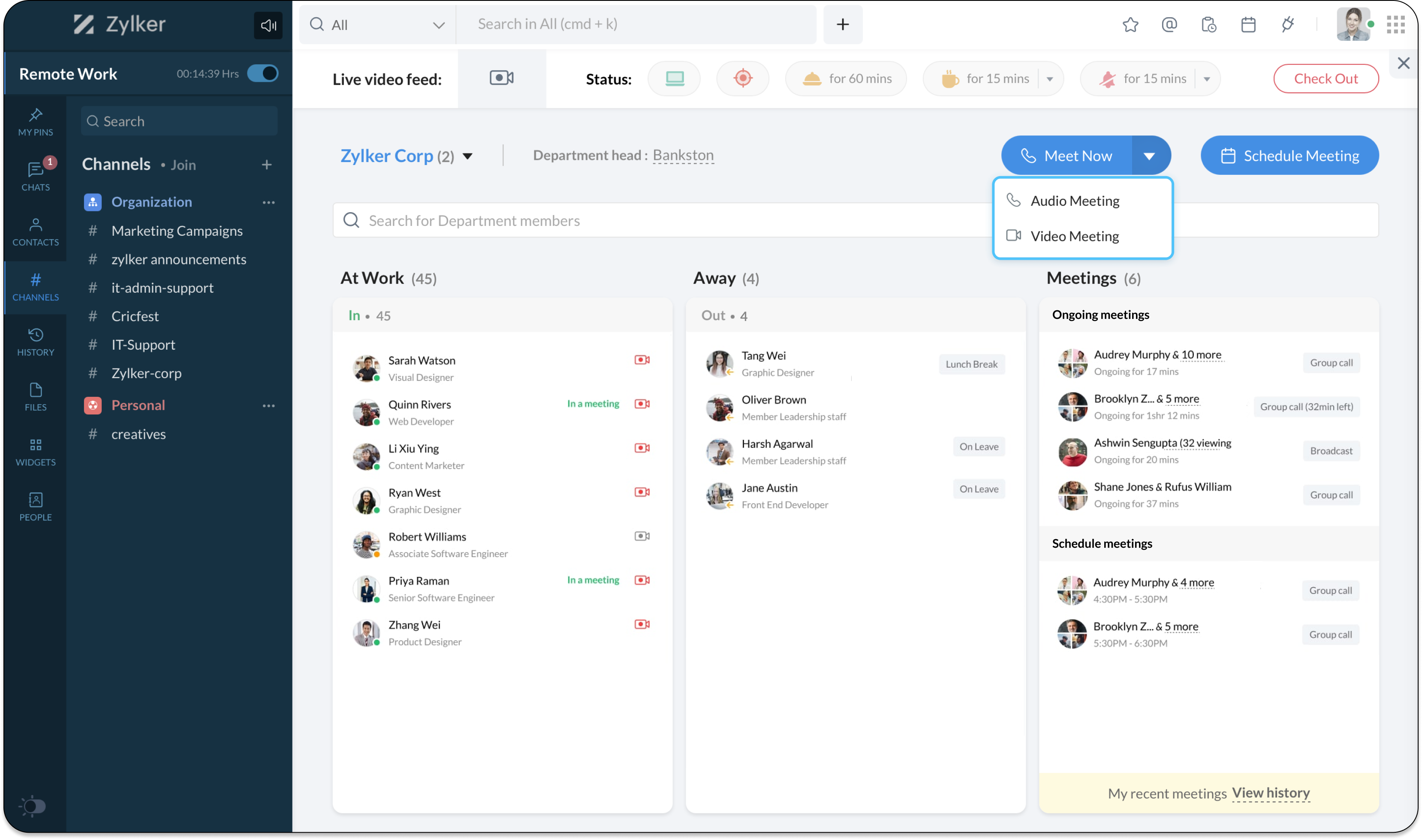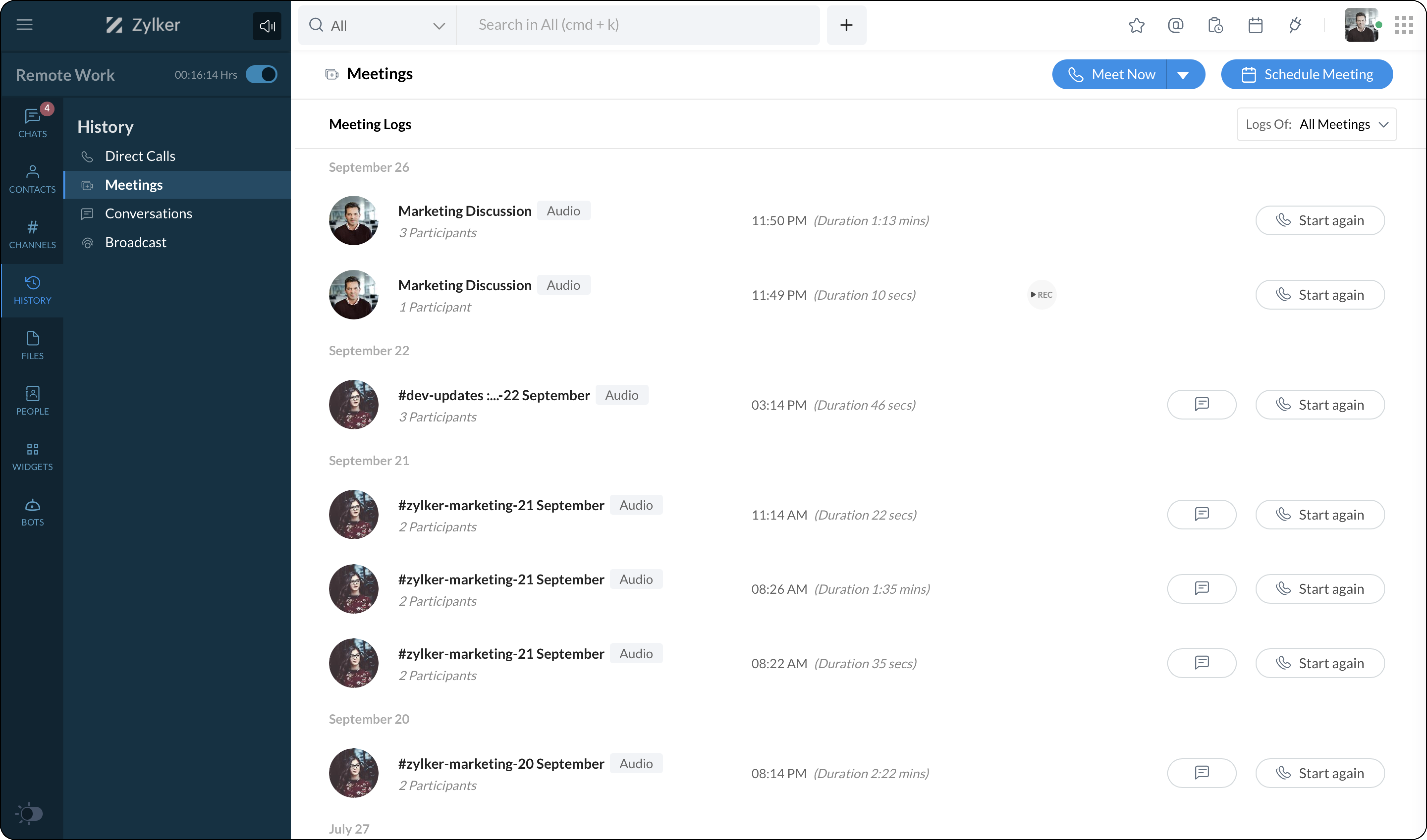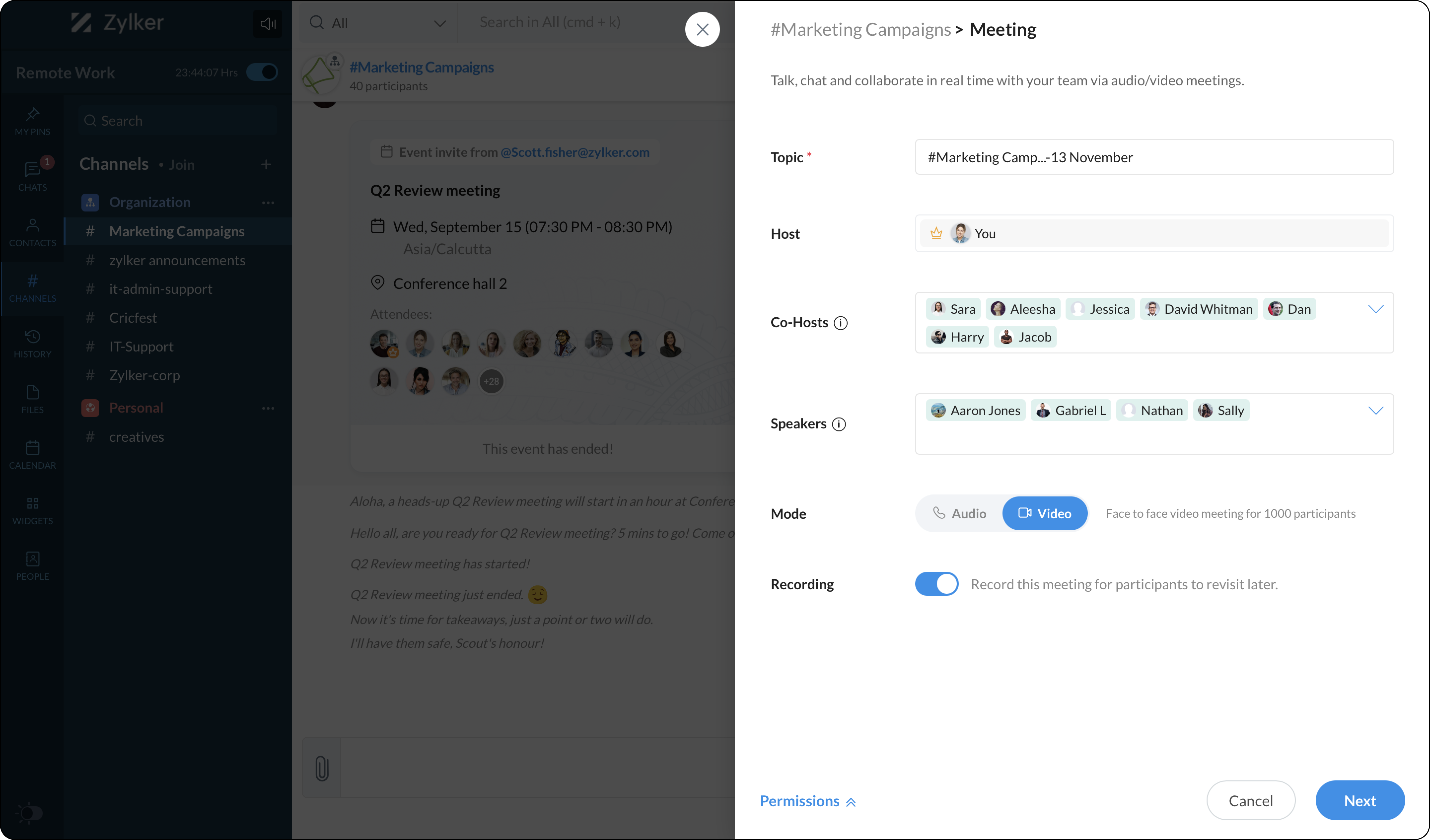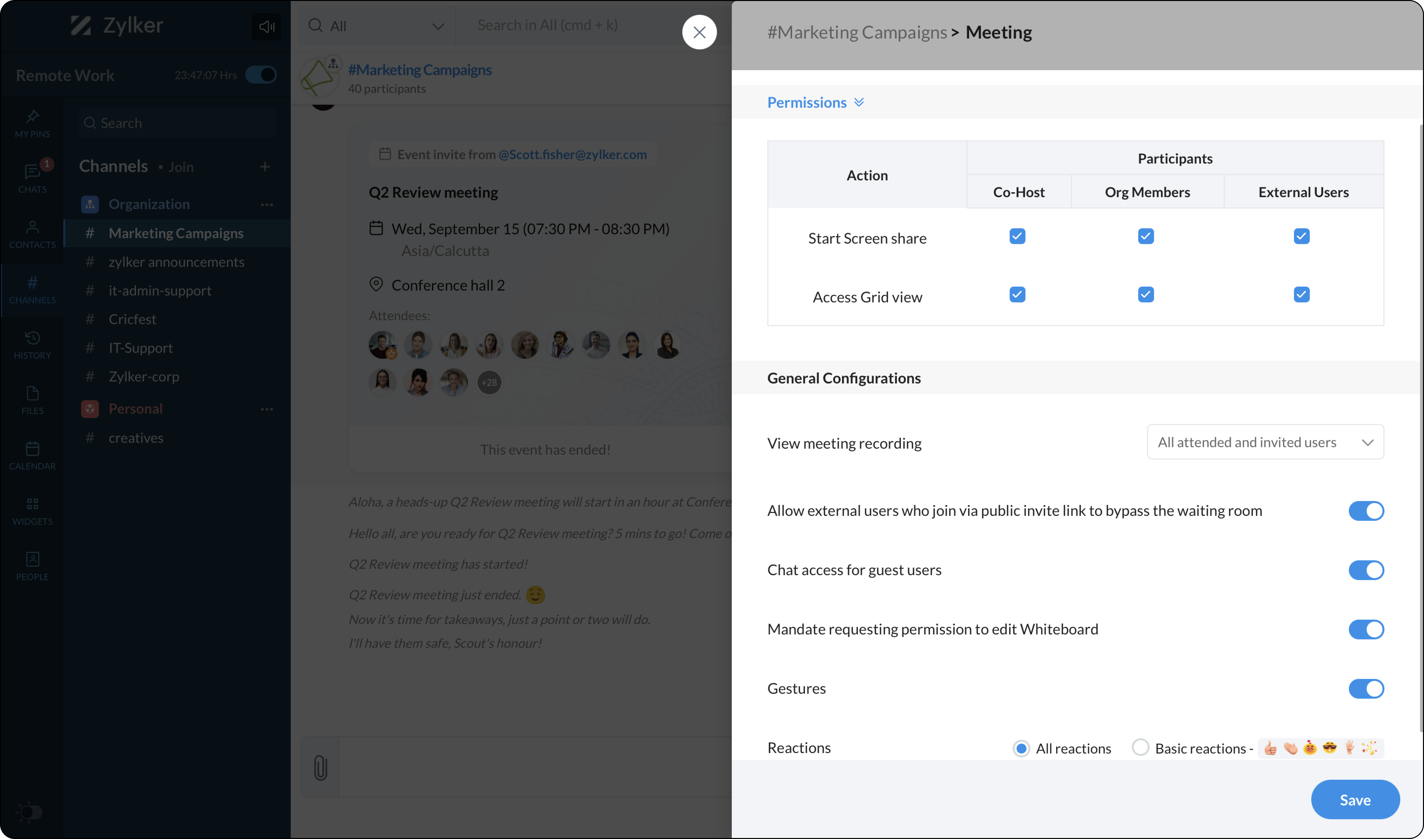 Cliq会議で実行できるさまざまなアクションについて詳しく知りたい場合は、次を参照してください:Cliq会議で実行できるアクション