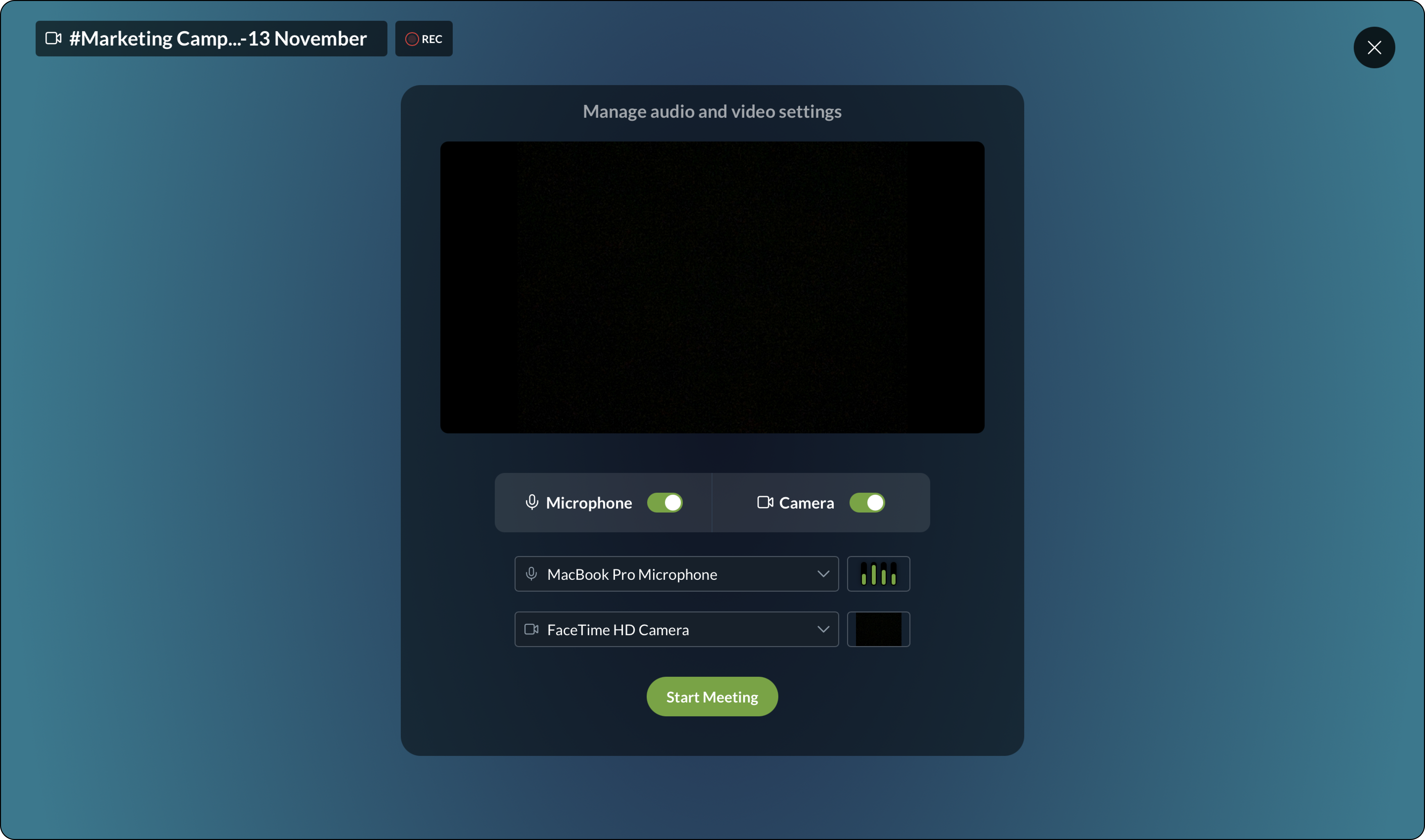 「Cliqでオーディオ/ビデオミーティングを開始する」