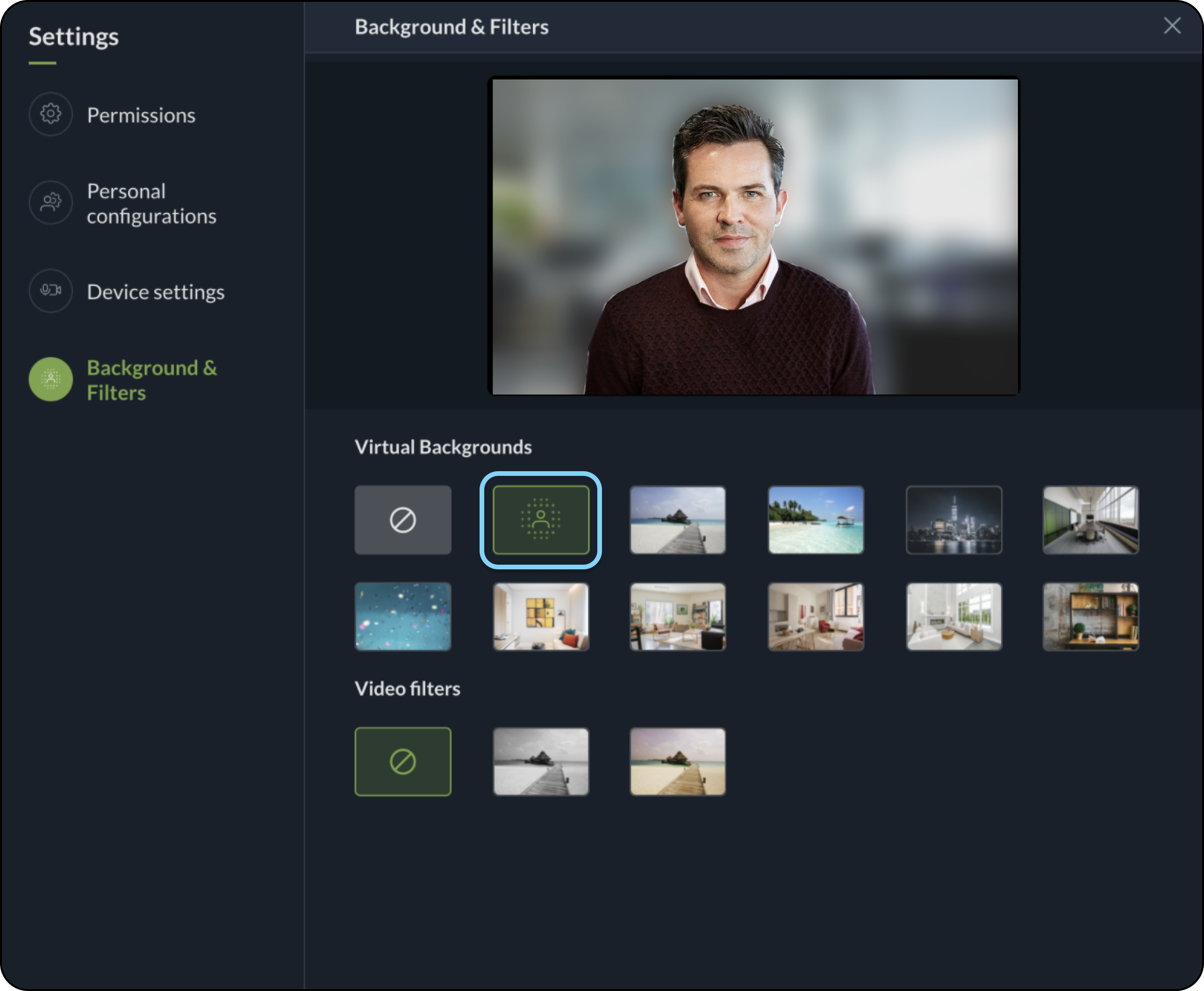 あなたは、選択するために利用可能な様々な仮想背景とビデオフィルターを見ることができます。