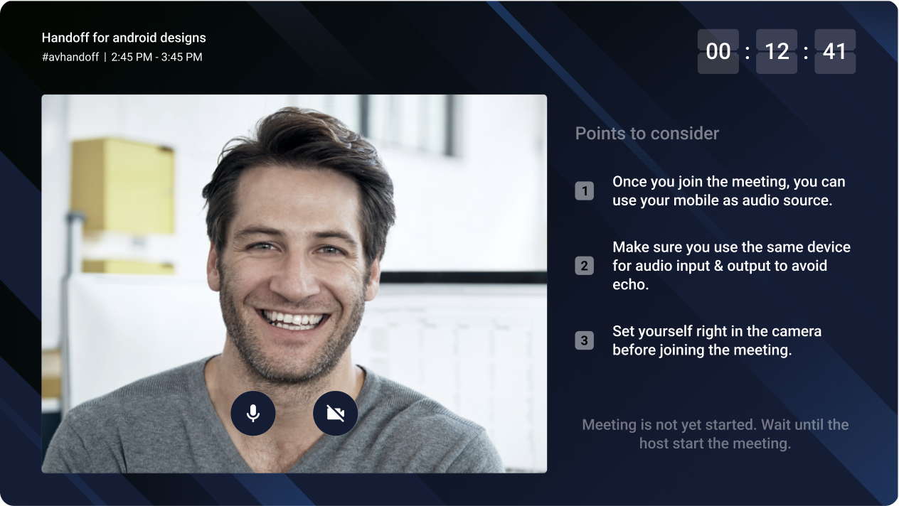 予定された会議を開始する場合は、予定時刻の15分前から会議を開始できます。