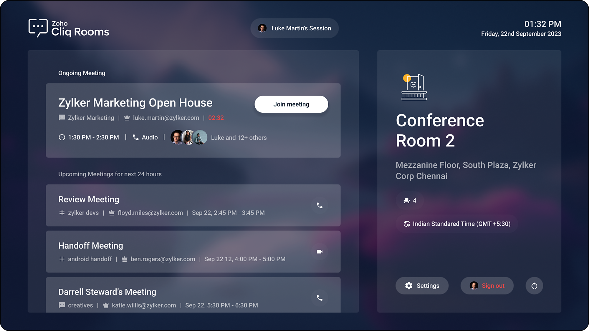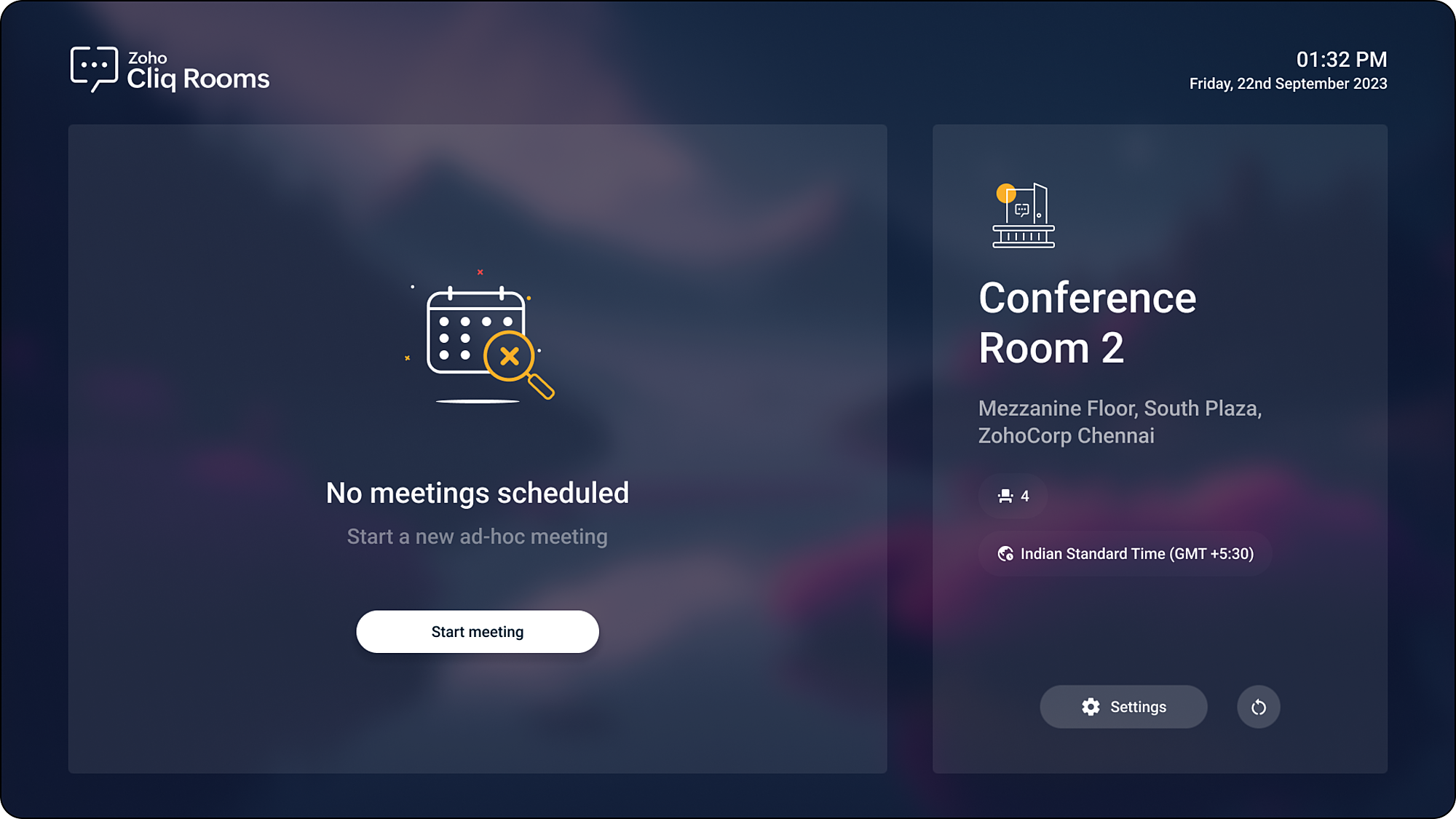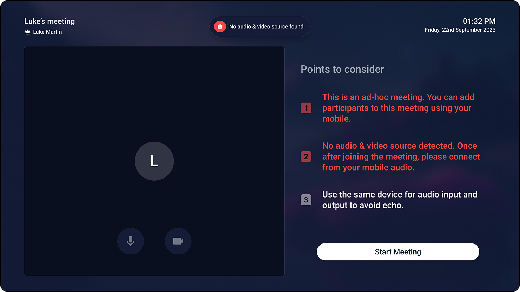 画面左側では、予定を開始するオプションを使って、アドホックな予定を開始できます。