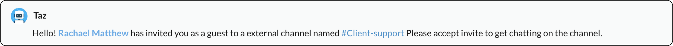 i. チャンネルに参加するため、Taz Botから通知を受け取ります。