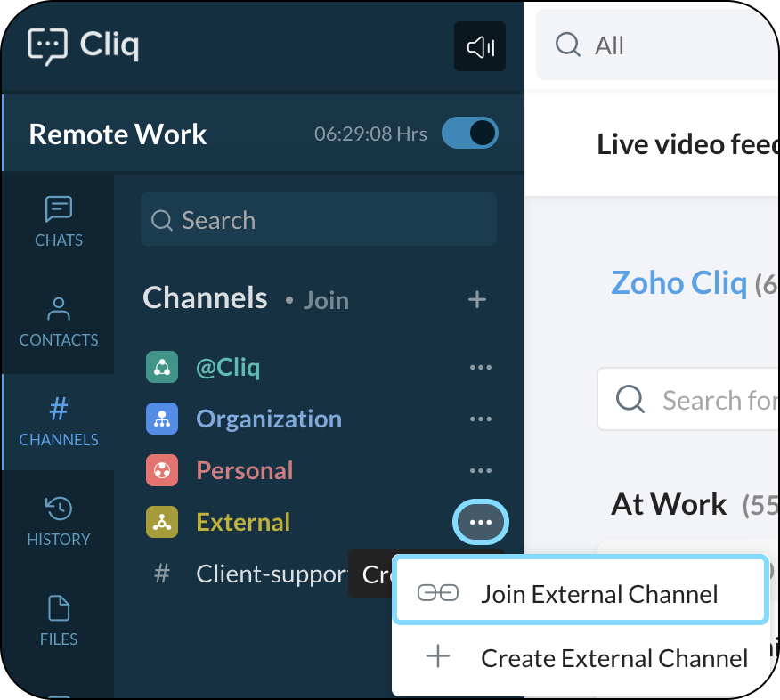 iii. また、左サイドバーの「チャンネル」をクリックすることでも参加できます。
