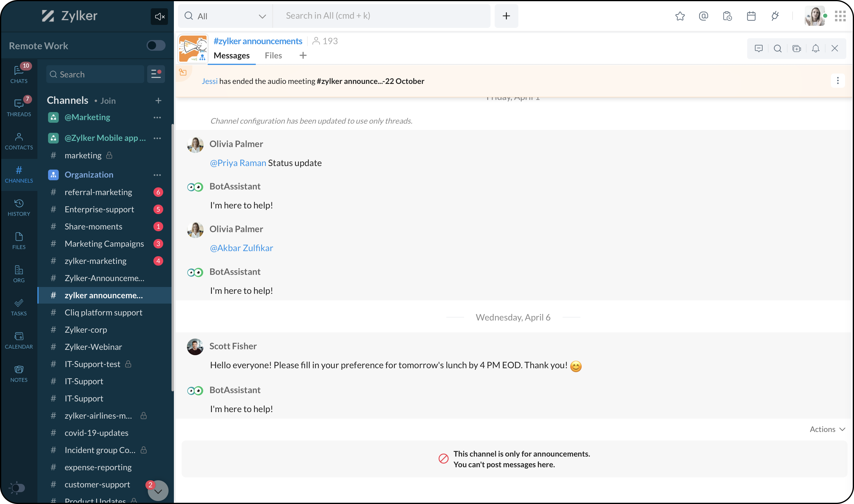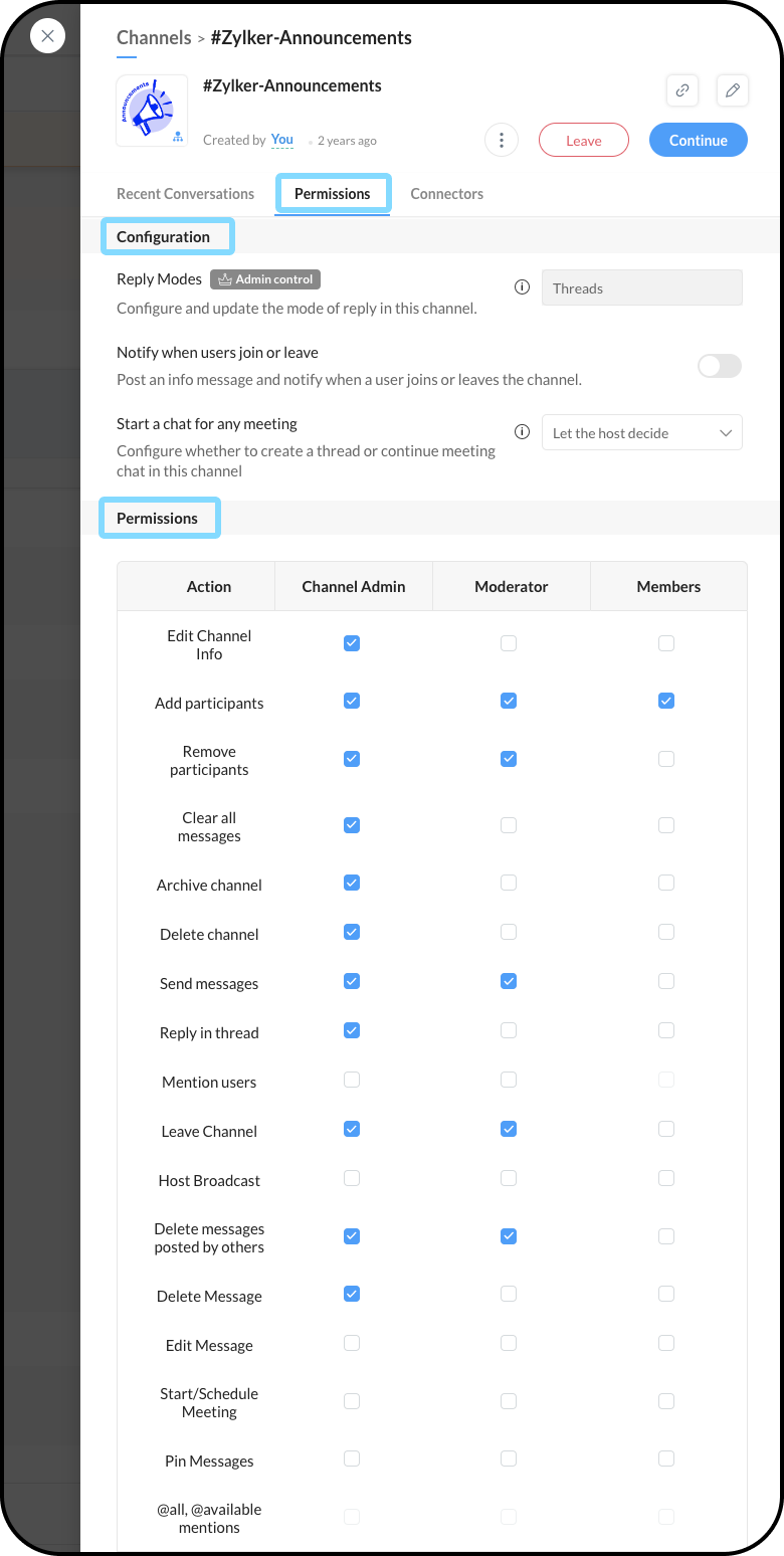 注: チャネルパーミッションは、Cliqの Unlimitedプランと、 Zoho Oneに利用可能です。