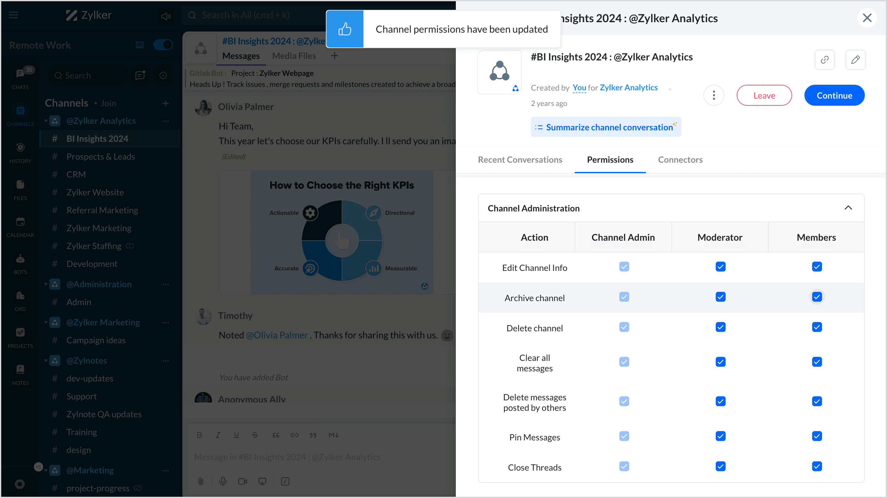 Notesメモ: Channel権限はZoho Cliqのプロフェッショナルおよびエンタープライズプラン、およびZoho Oneで利用できます。