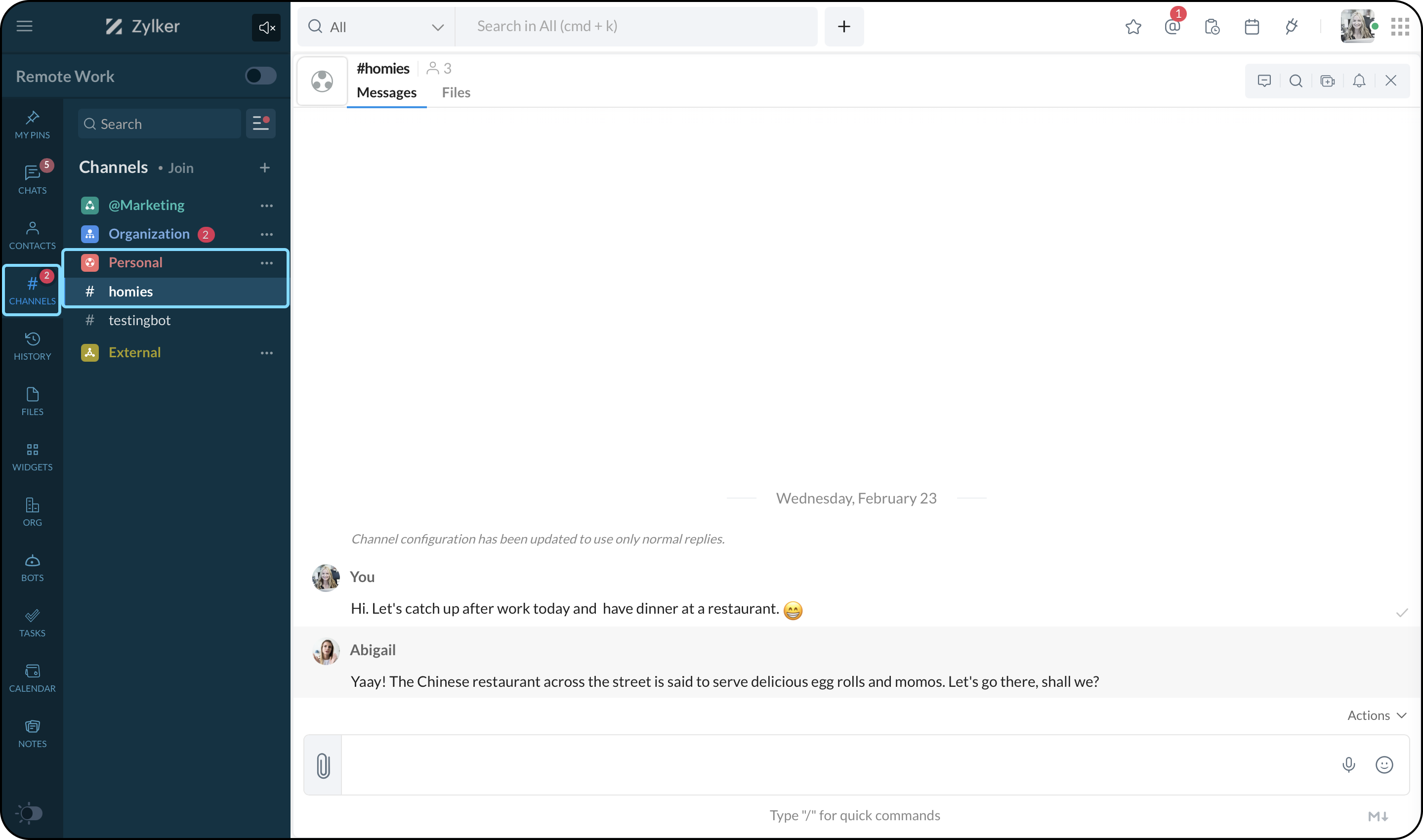#homies は、仕事の後に集まった友人たちが作成した個人的なチャンネルです。レストラン、食べ物、共通の興味などについて話し合うディスカッションルームです。