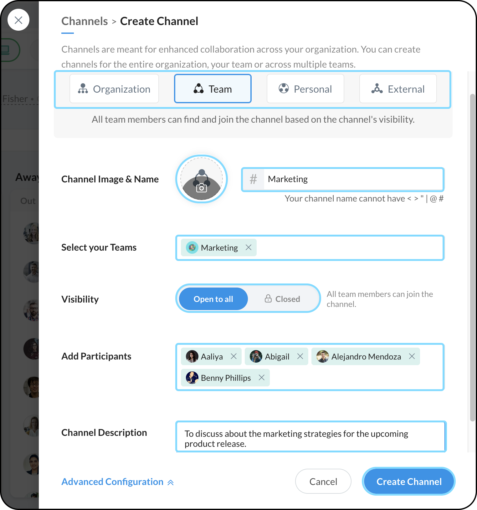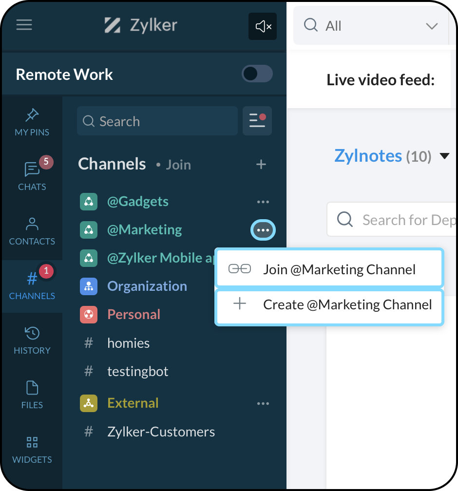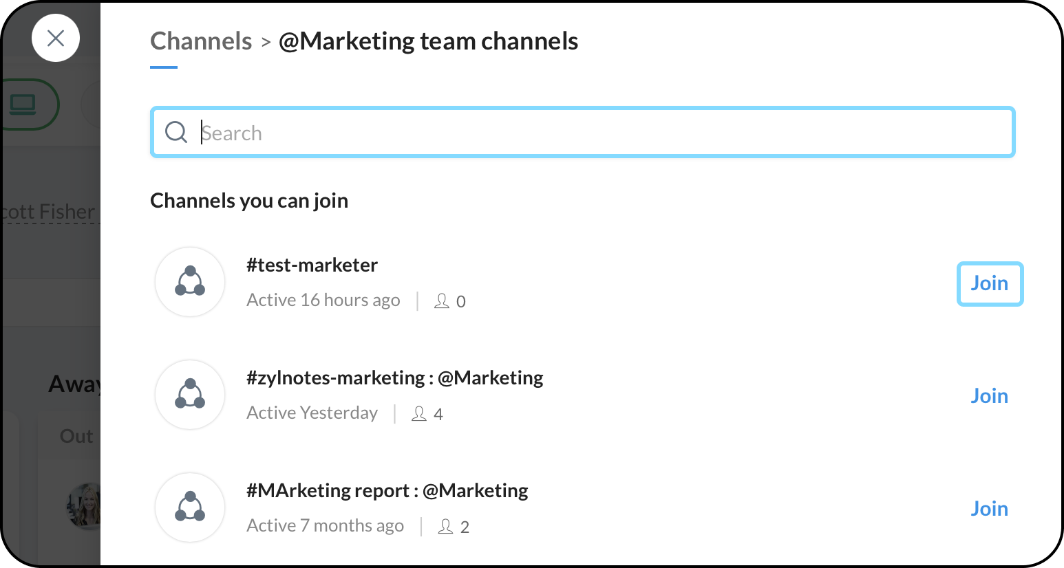 これは、アクションメニューを使用してチャンネルを作成して参加する簡単な方法です: