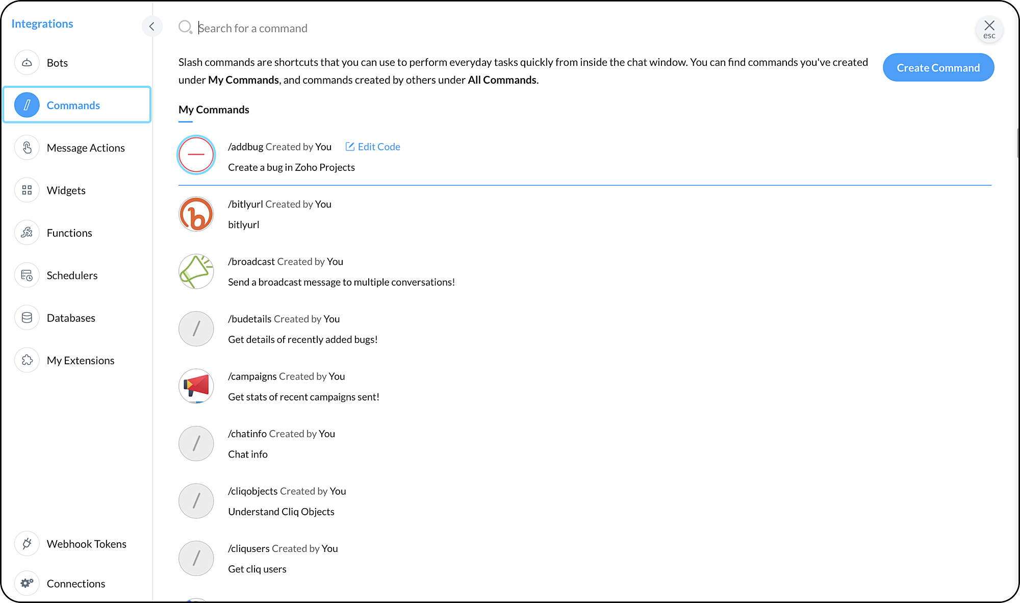 3. コマンドのリストが表示されます。My Commandsの下で、コマンドアイコンの上にカーソルを合わせます。アイコンの代わりにマイナスが表示されます。それをクリックしてコマンドを削除します。