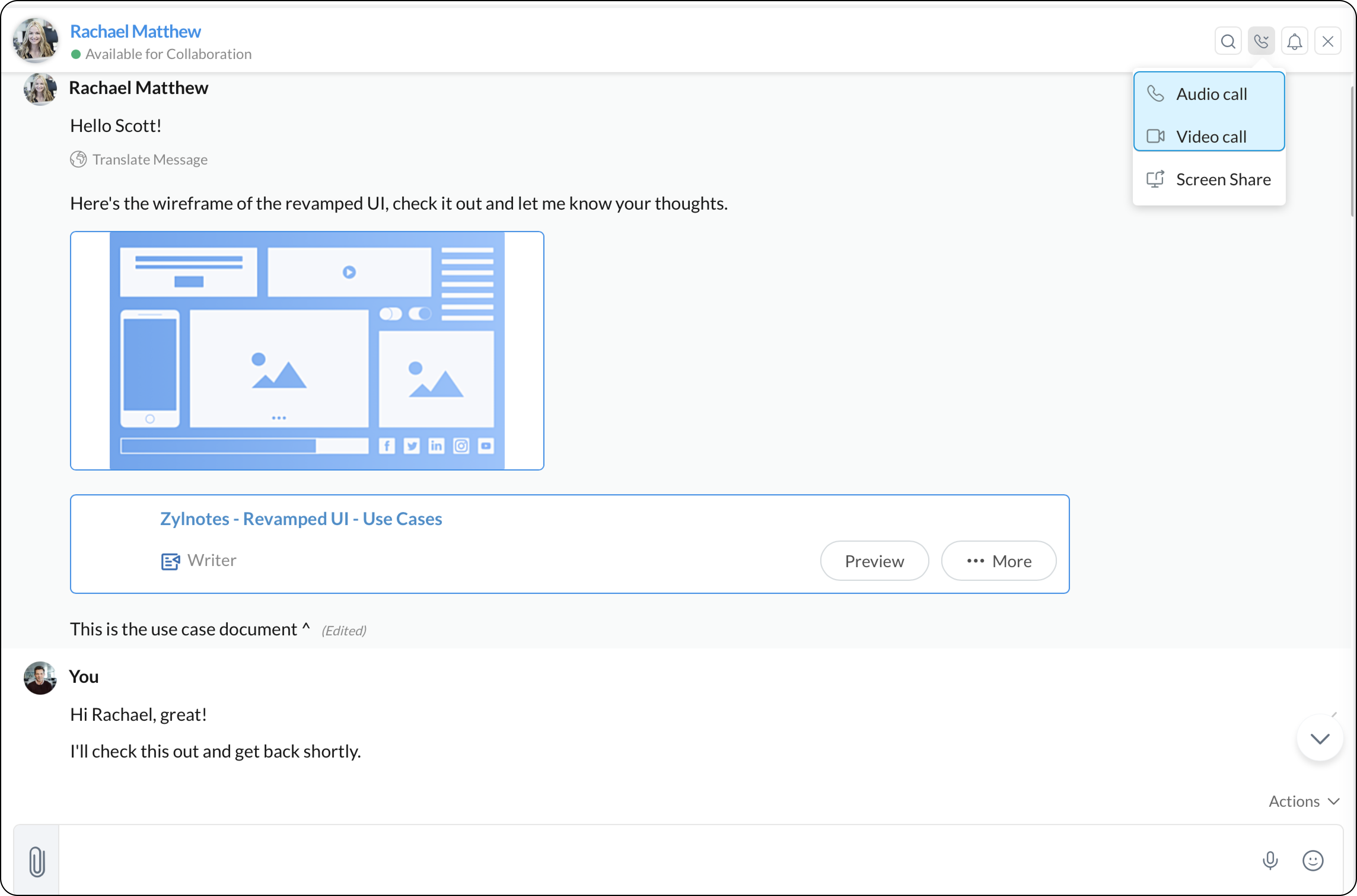 ワンオンワンオーディオ/ビデオコールを行うために、好みの選択肢を選択してください