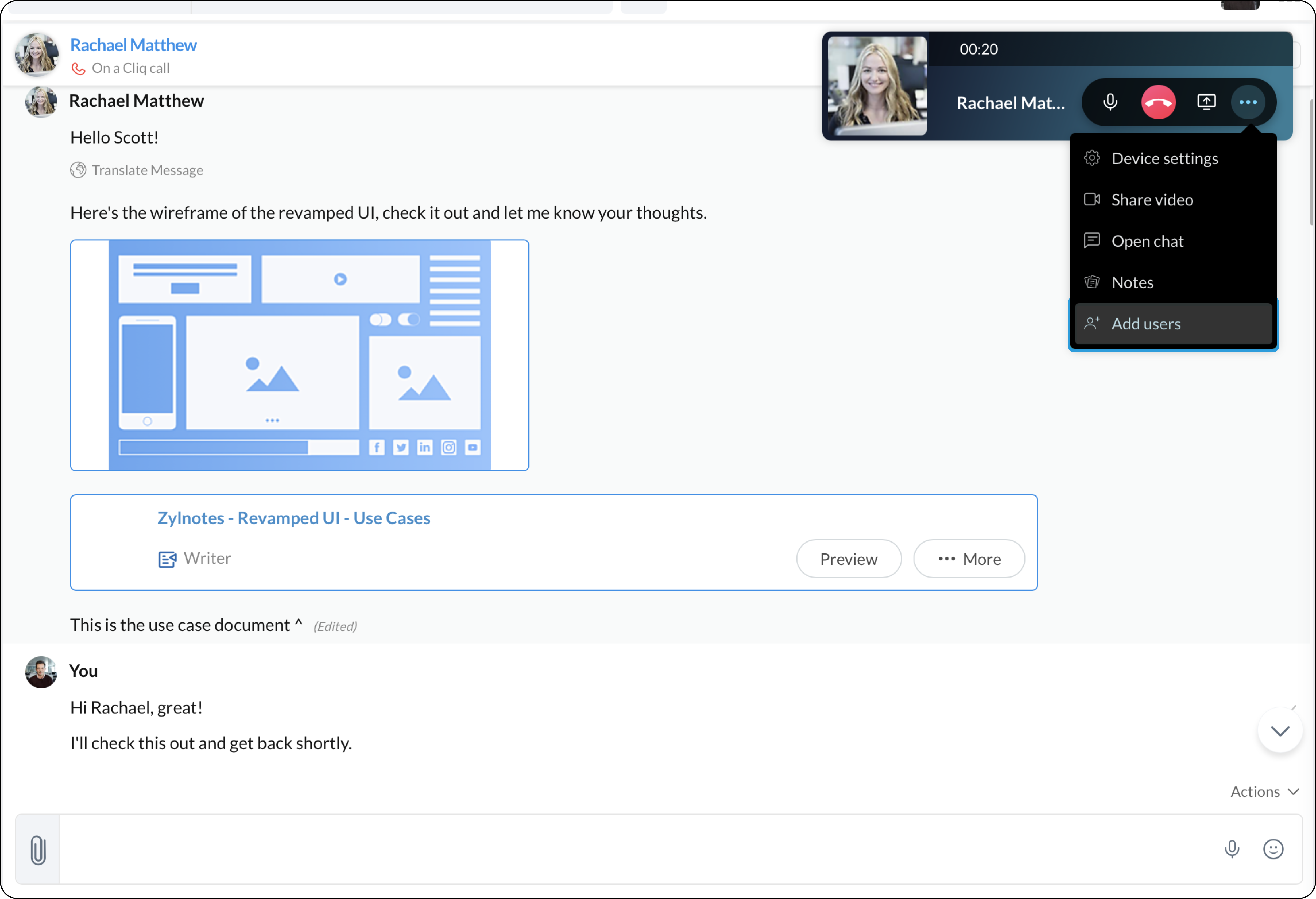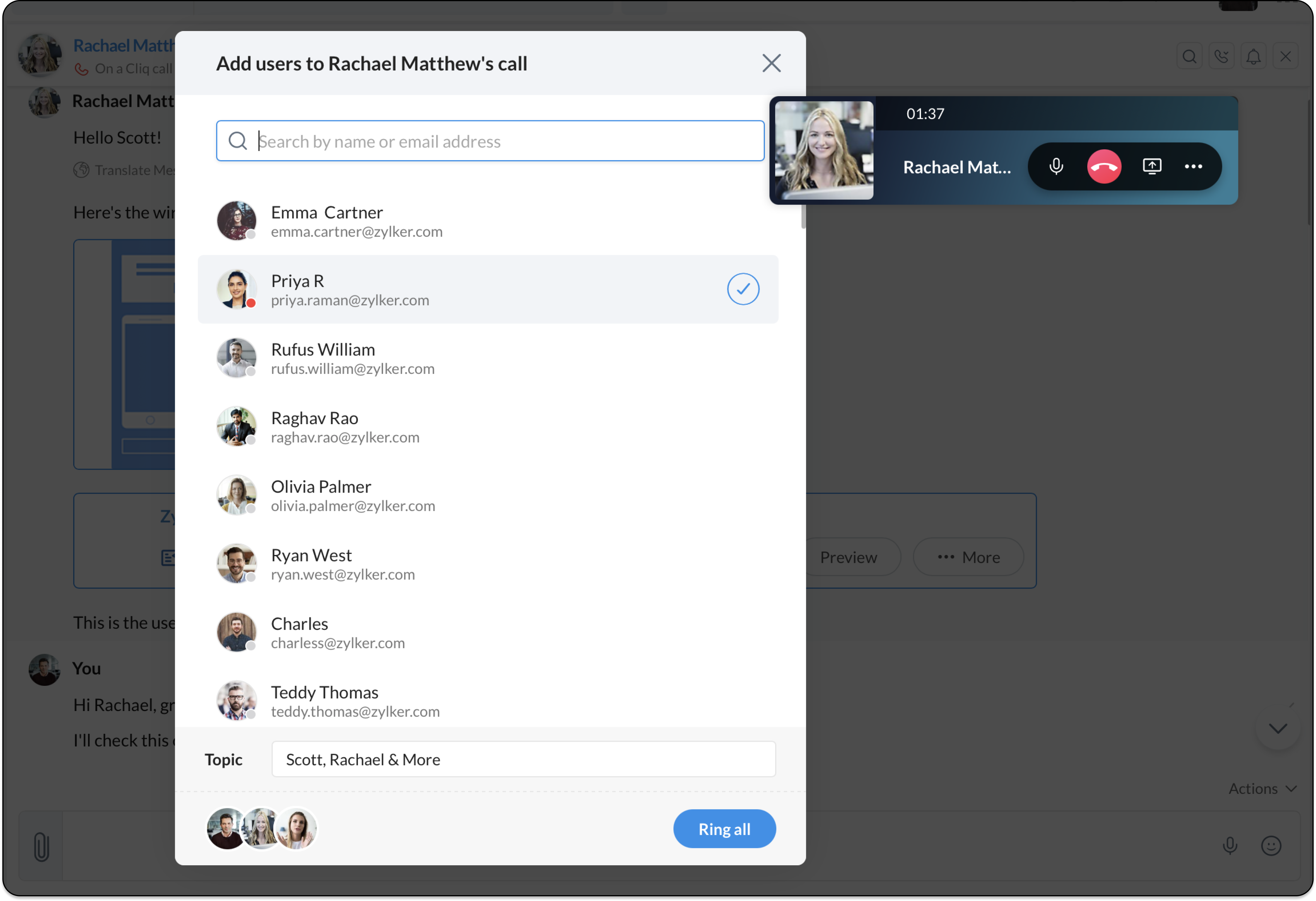 ユーザーをコールに追加すると、選択された参加者にはコールに参加するためのリングが鳴ります。