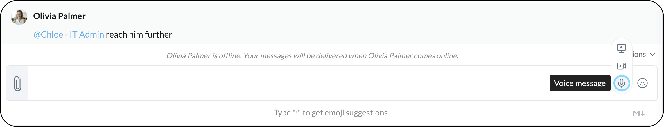 1. チャットウィンドウの下部に、 音声メッセージアイコンをクリックします。