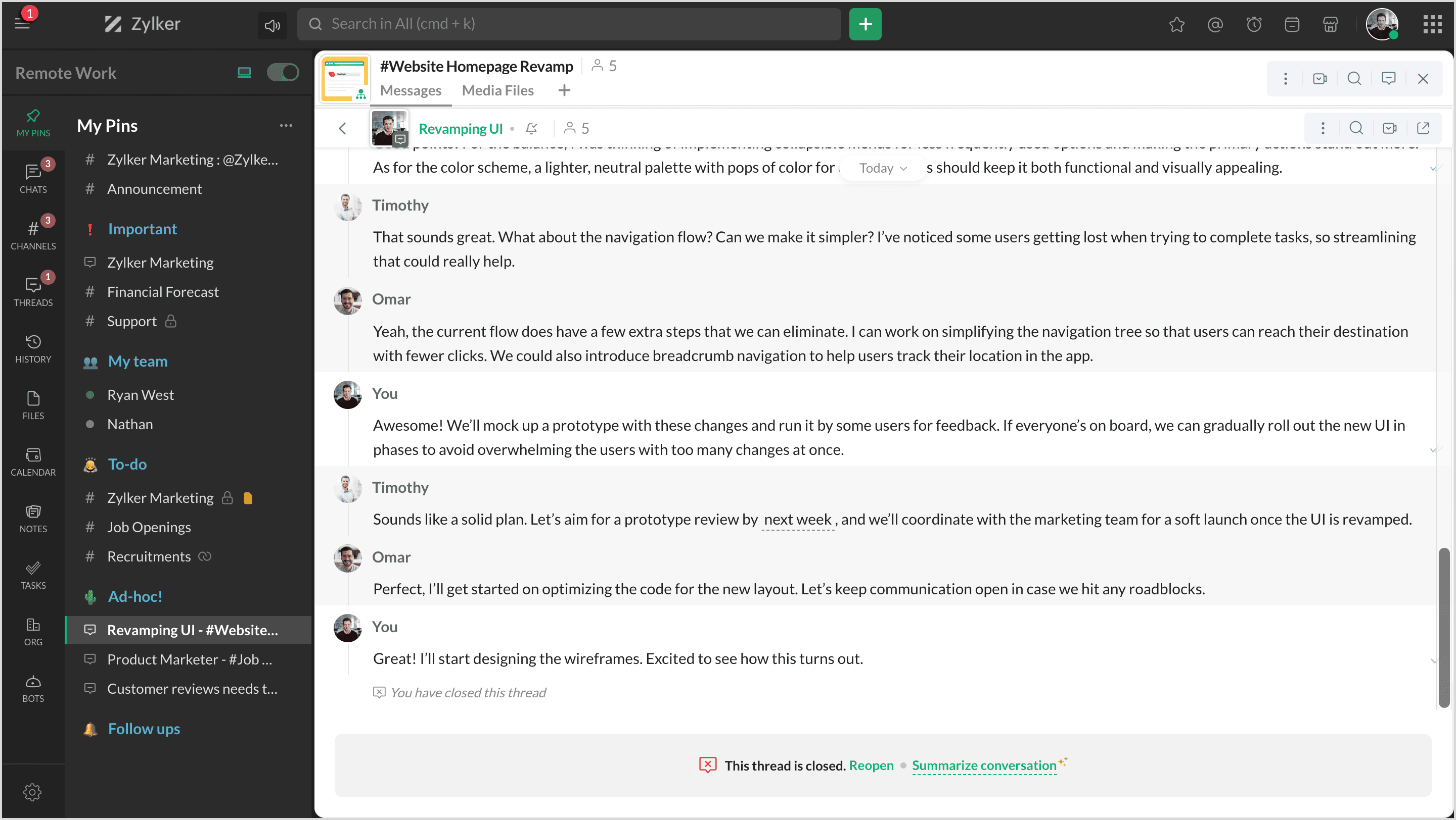 Zoho Cliqのチャット要約