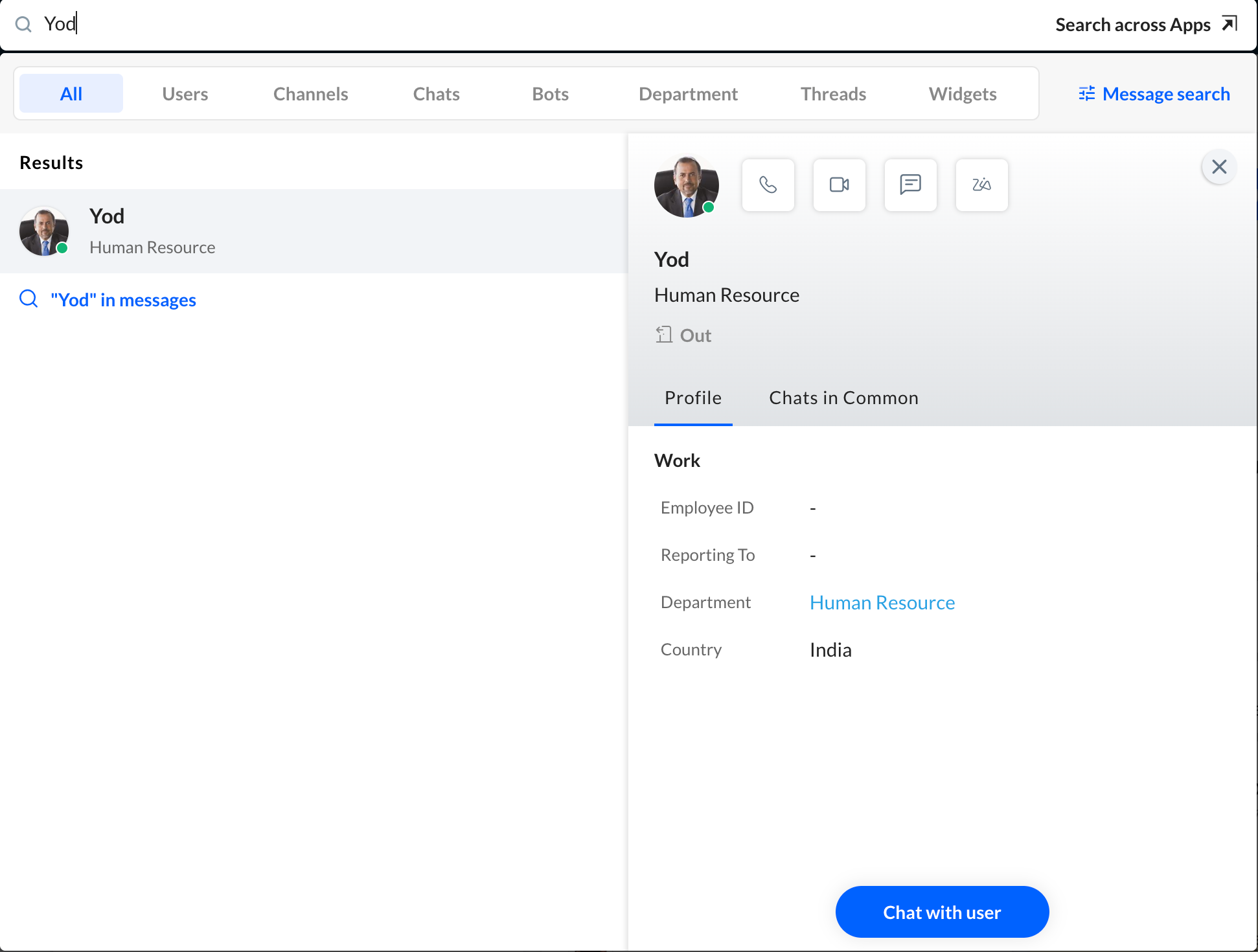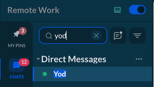 メモ: チャットウィンドウを開くには、Remote Workビューでユーザーをクリックして、ダイレクトメッセージを開始することもできます。