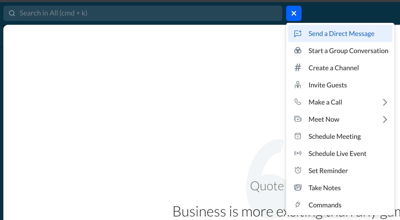 また、検索バーの横にあるQuick Actionsアイコンをクリックして、ダイレクトメッセージを送信することもできます。