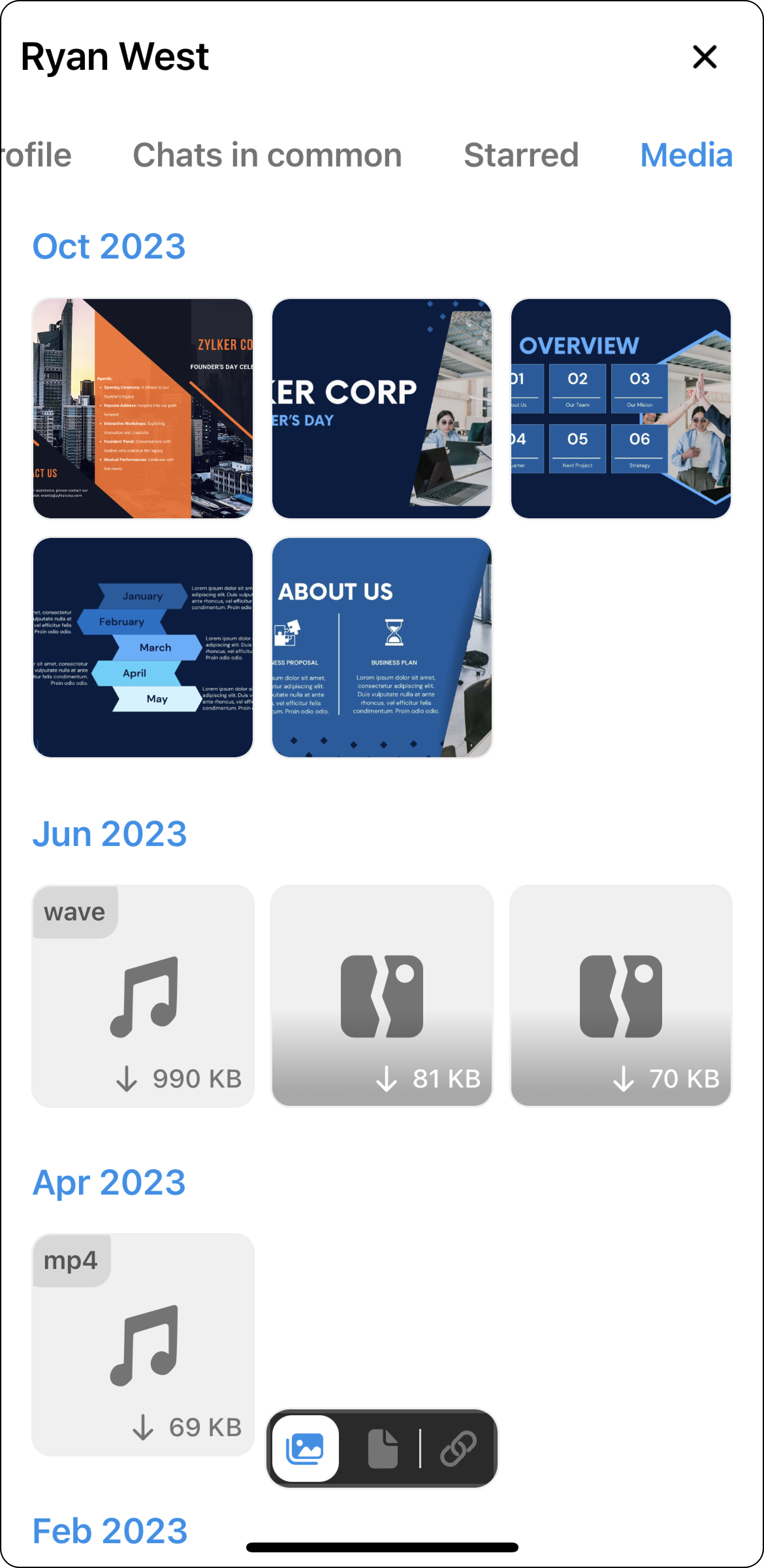 ヒント:ファイルをすばやく共有するには、ユーザーとのチャットウィンドウにドラッグ&ドロップしてください。