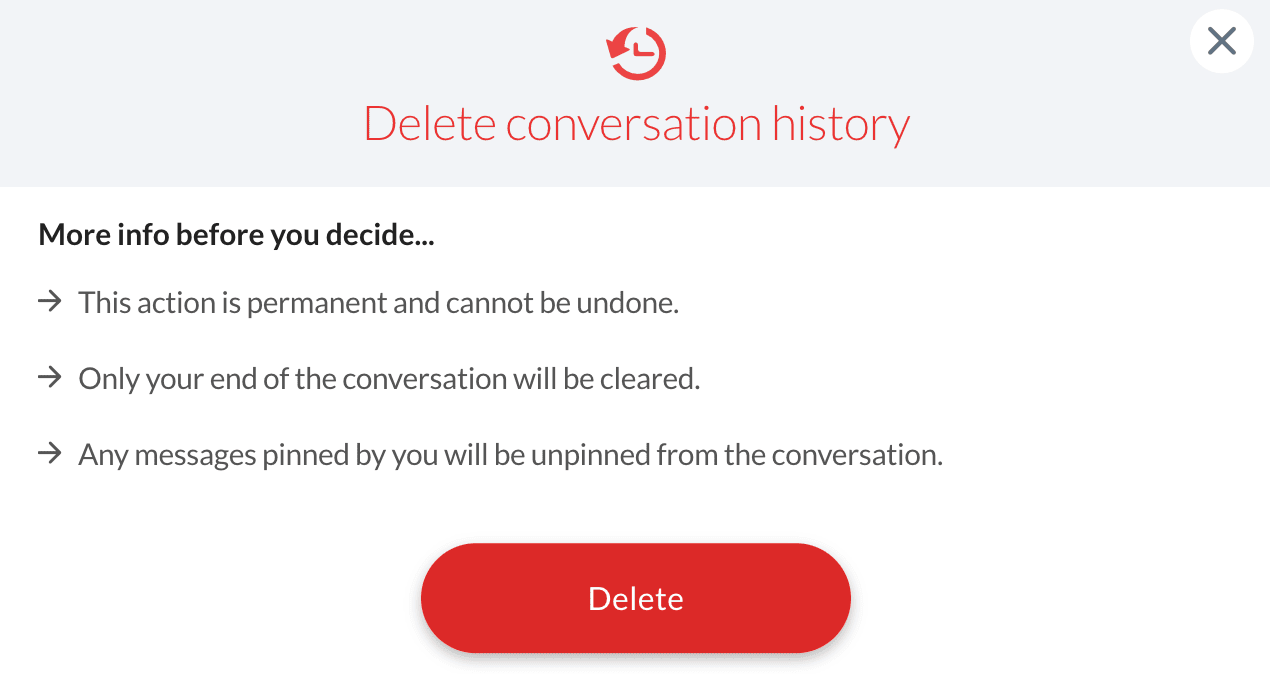 確認ポップアップウィンドウで 削除 をクリックして、チャットをクリアします。