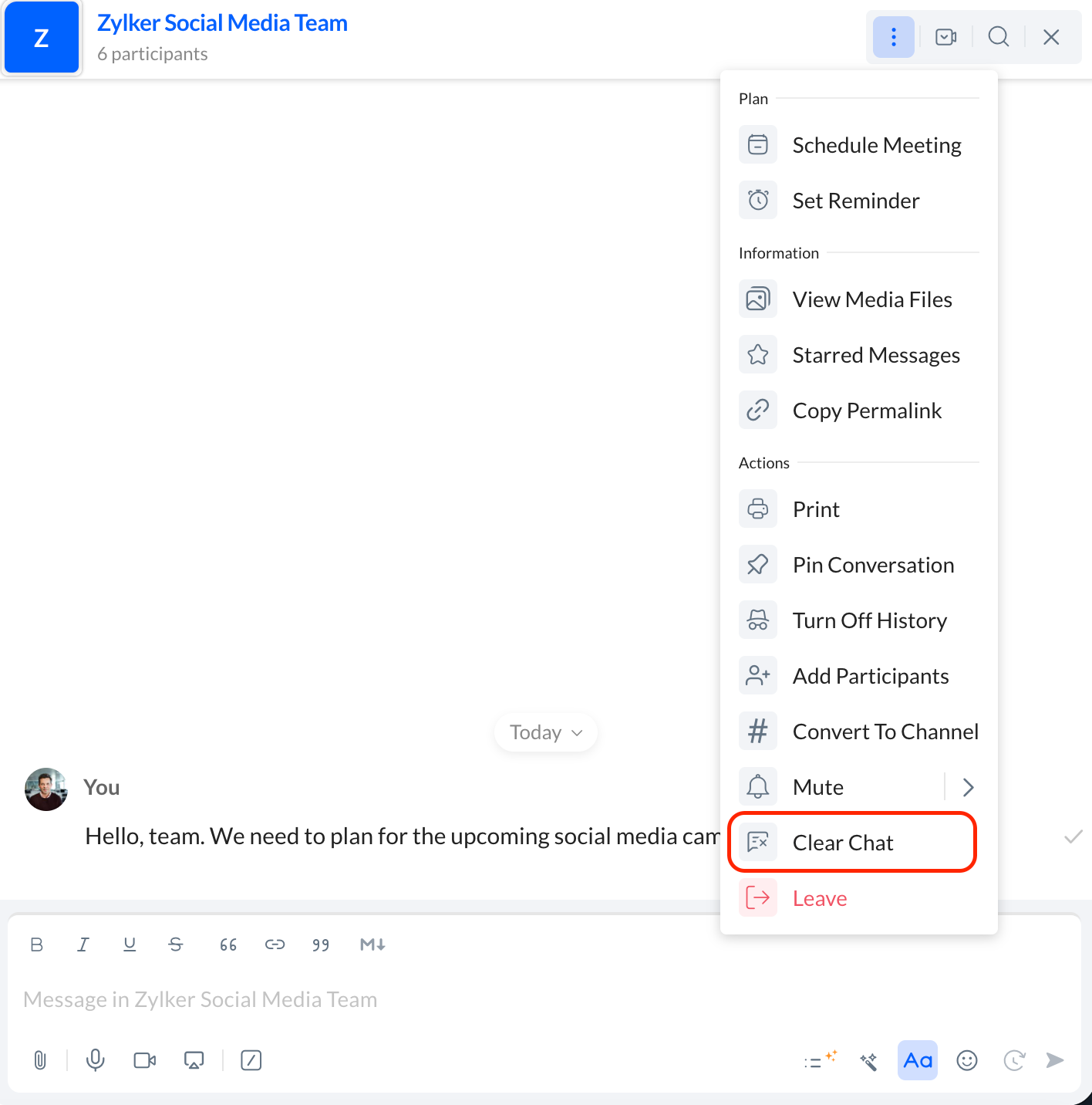 以下の手順に従って、Cliq のチャット履歴をクリアできます。