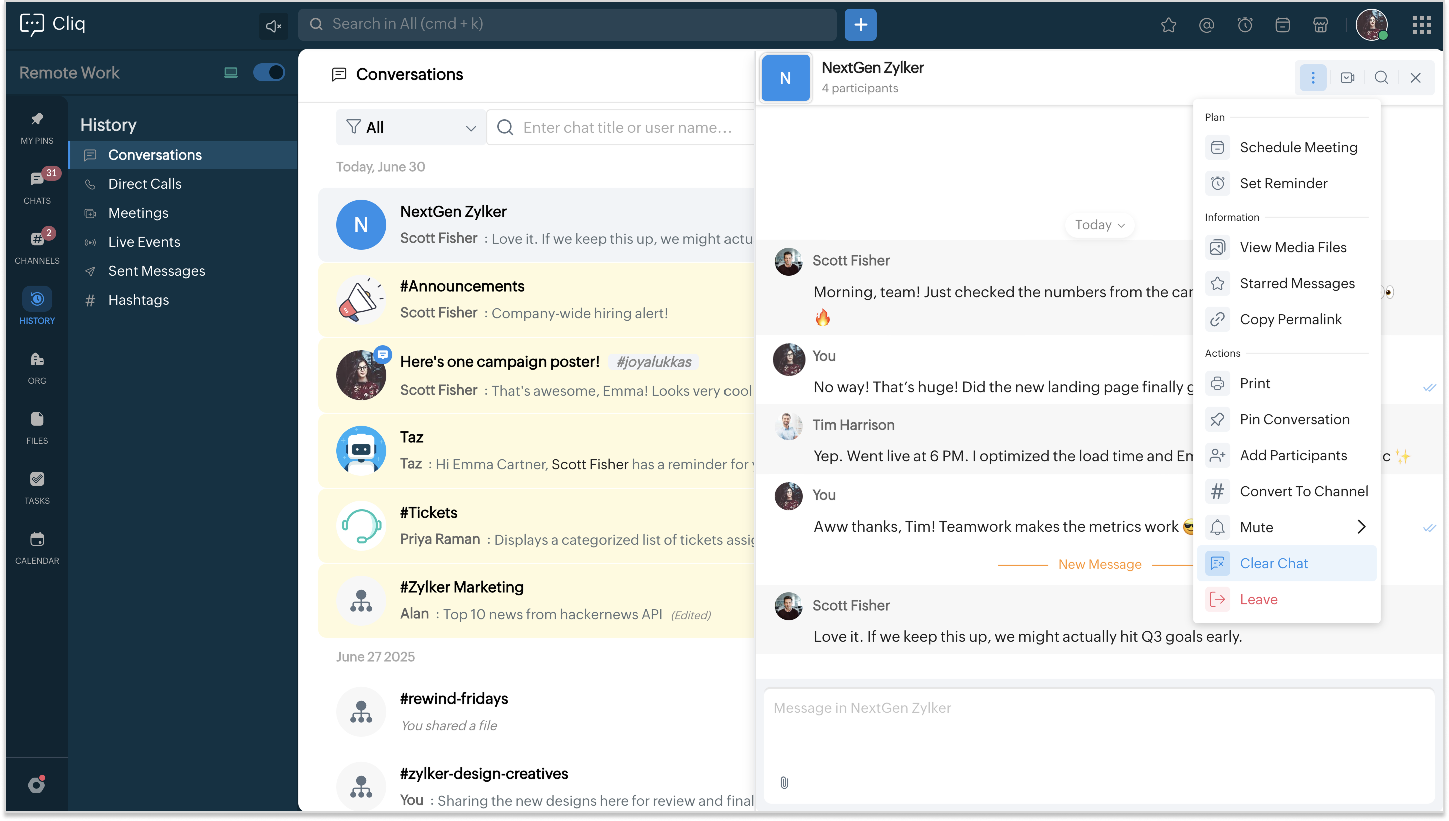 3. 三点リーダー(…)をクリックし、Chatクリアオプションを選択します。